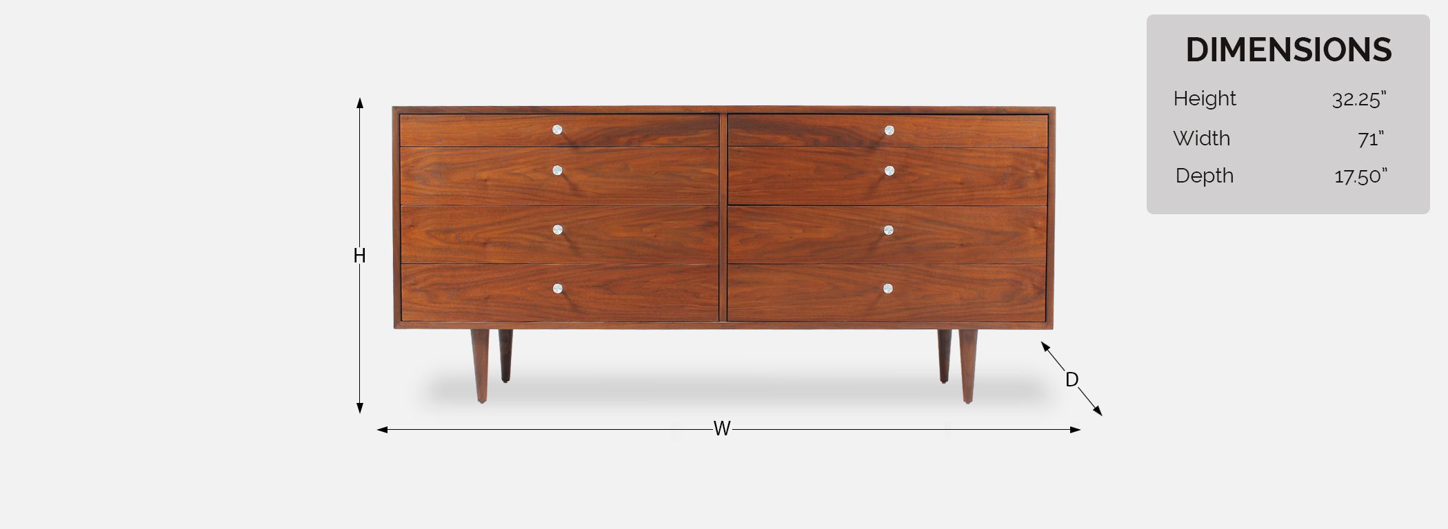 Walnut Wood, Metal Handles