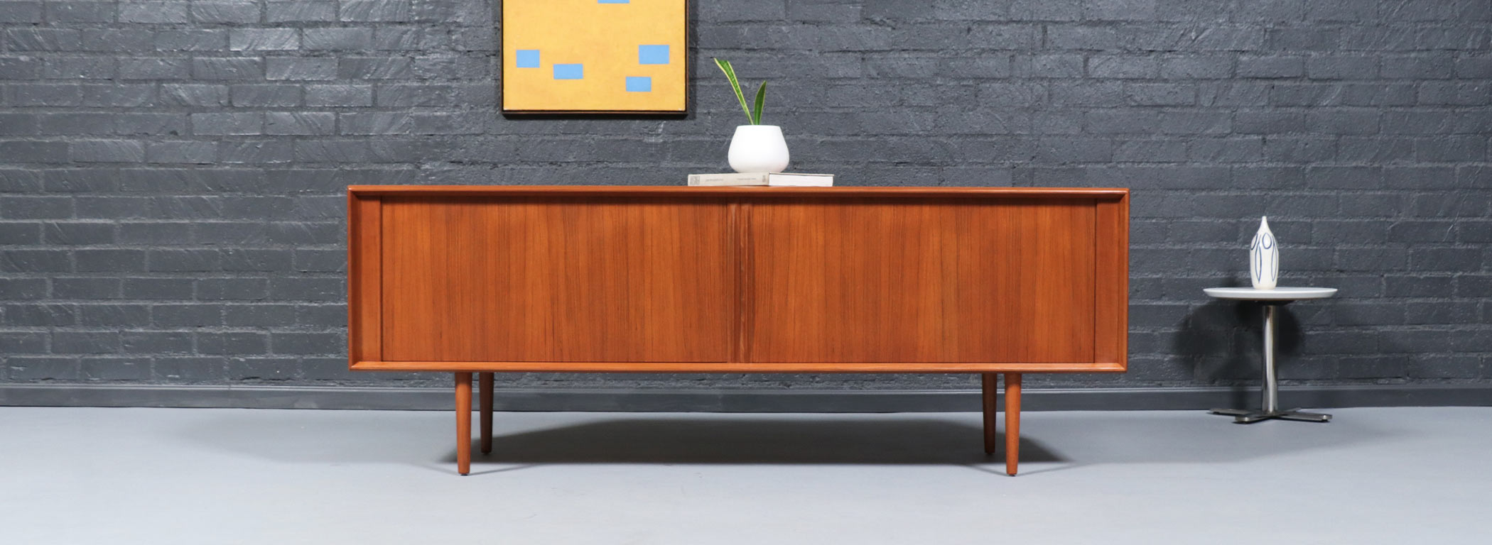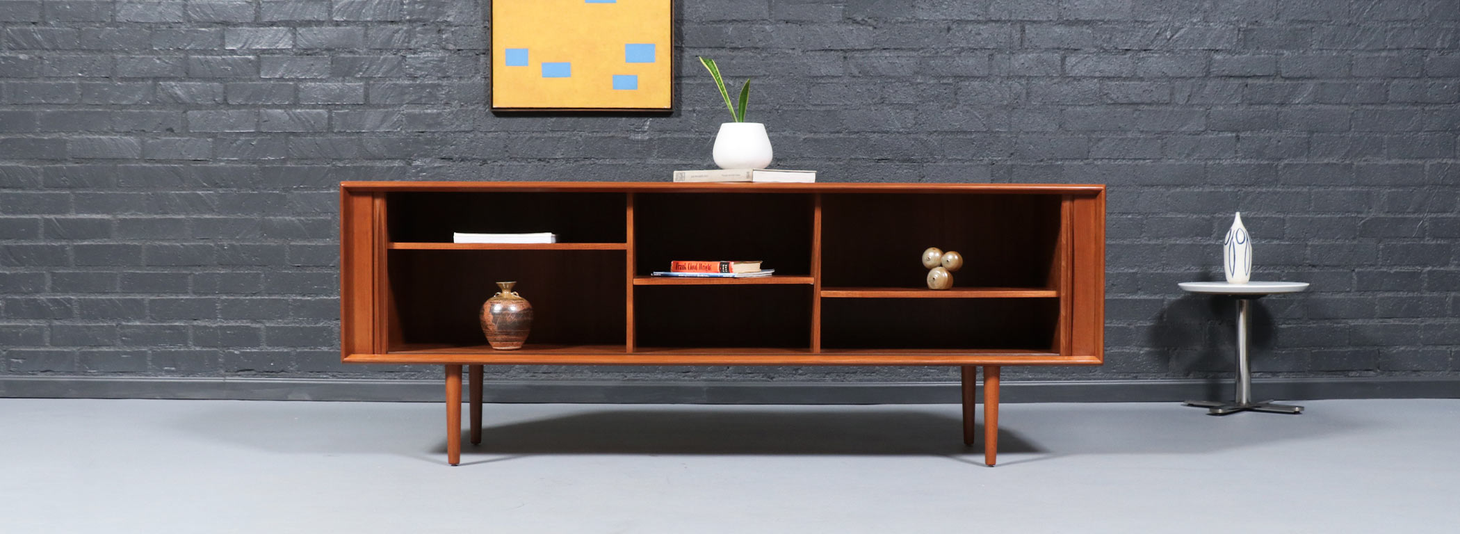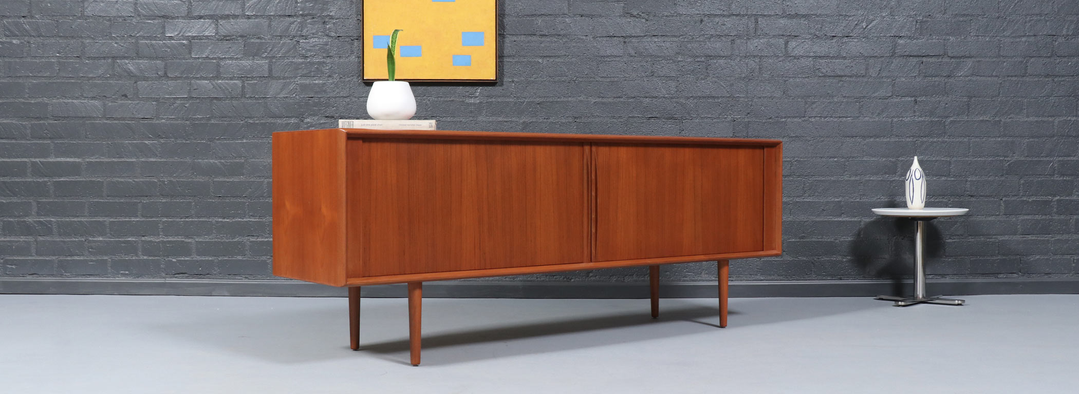 Danish Modern Teak Tambour-Door Credenza by Bernhard Pedersen