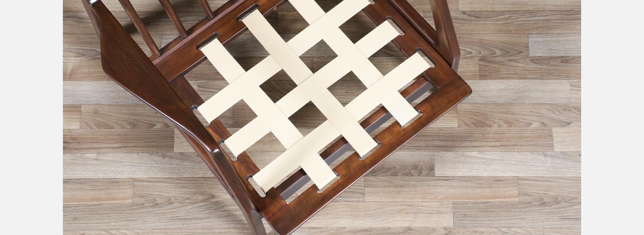 Walnut-Stained Beechwood, New Tweed Fabric, New Pirelli Webbing