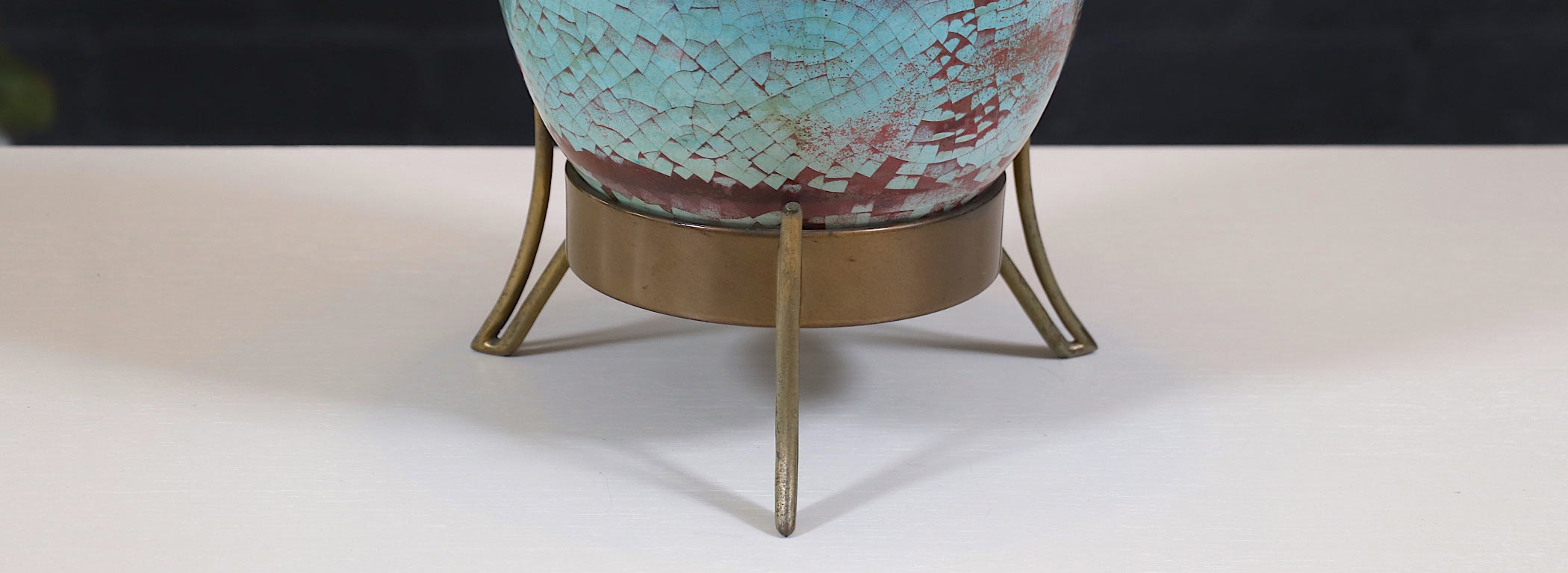 Mid-Century Glazed Ceramic w/ Brass Tripod Base Table Lamp by Marbro