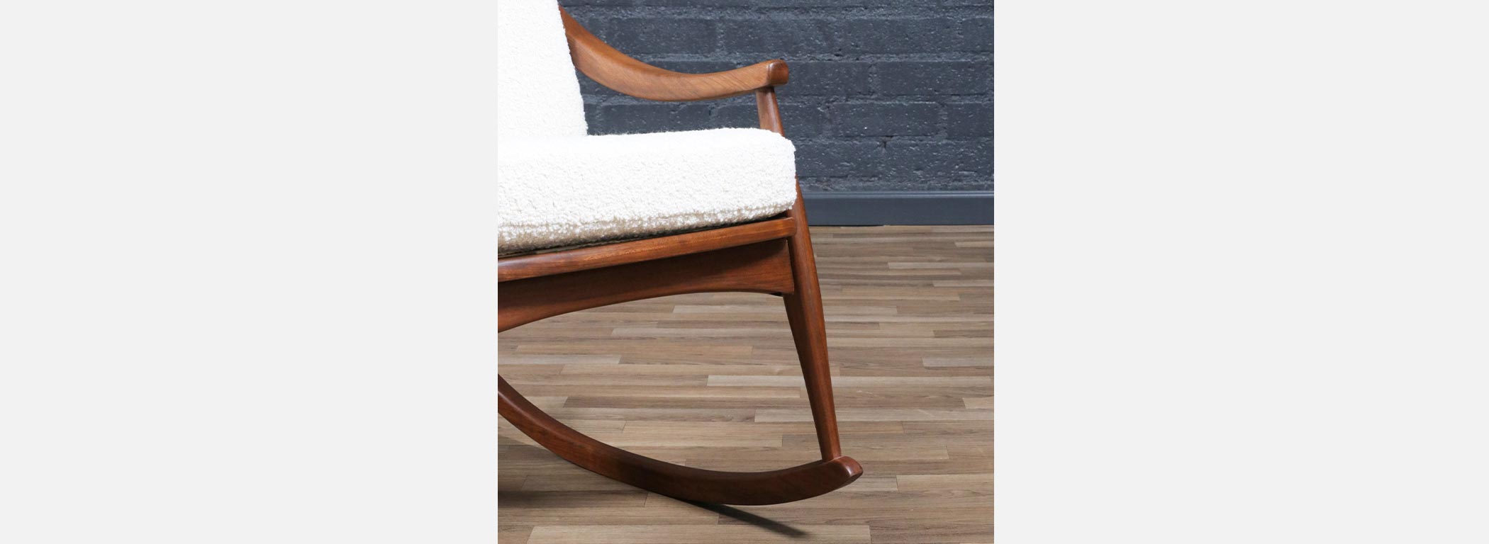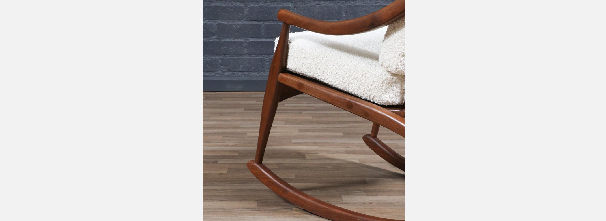 Mid-Century Modern Sculpted Walnut & Boucle Rocking Chair