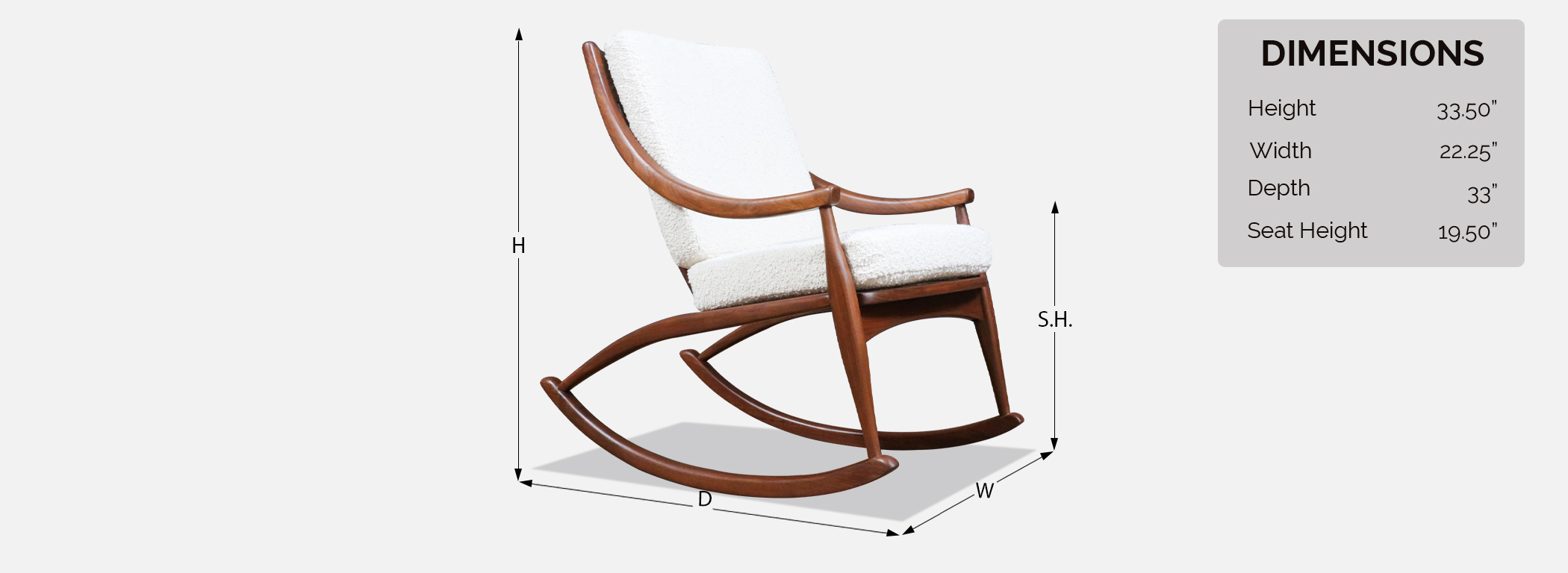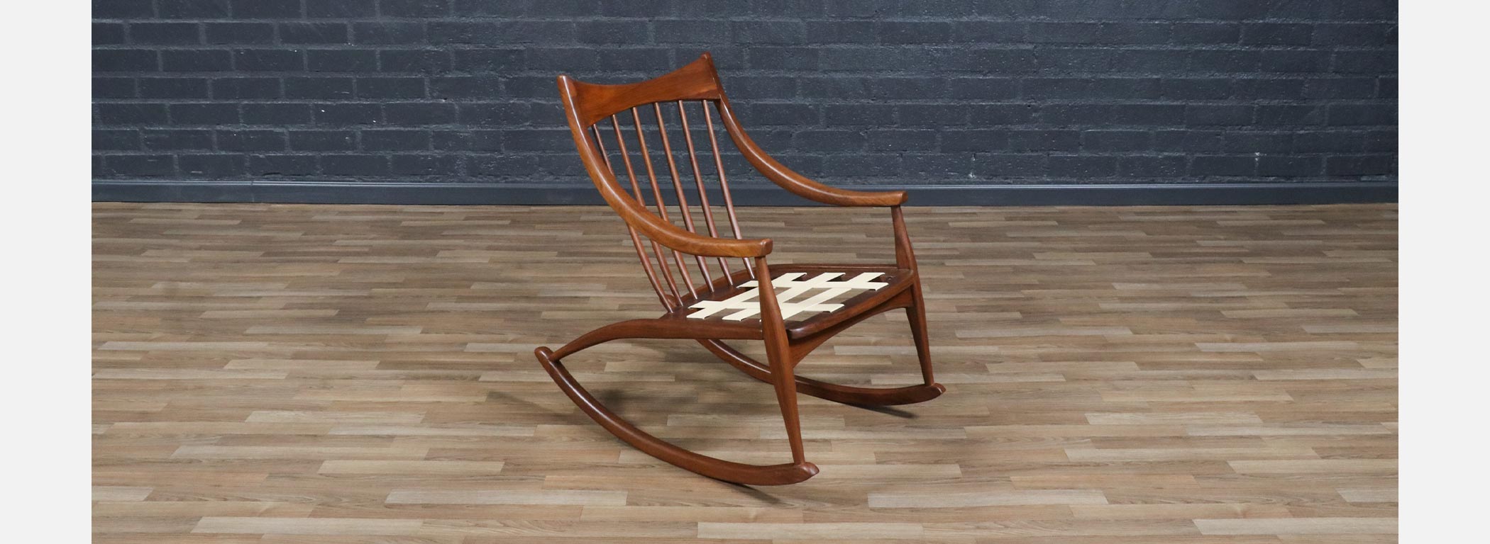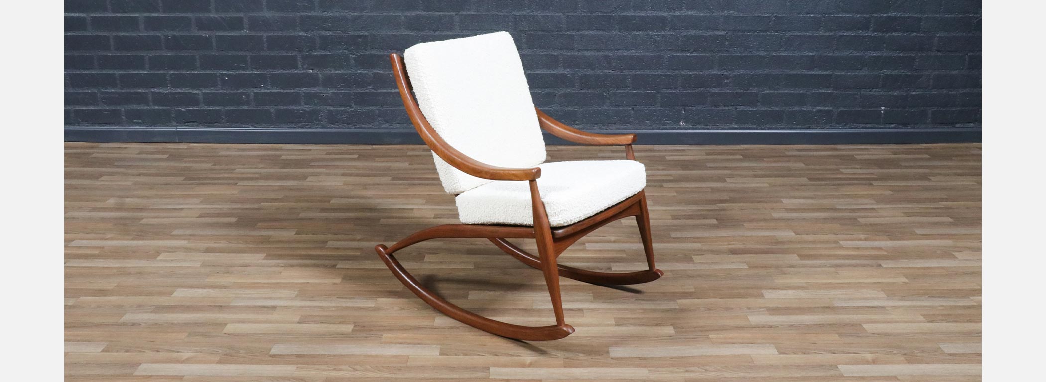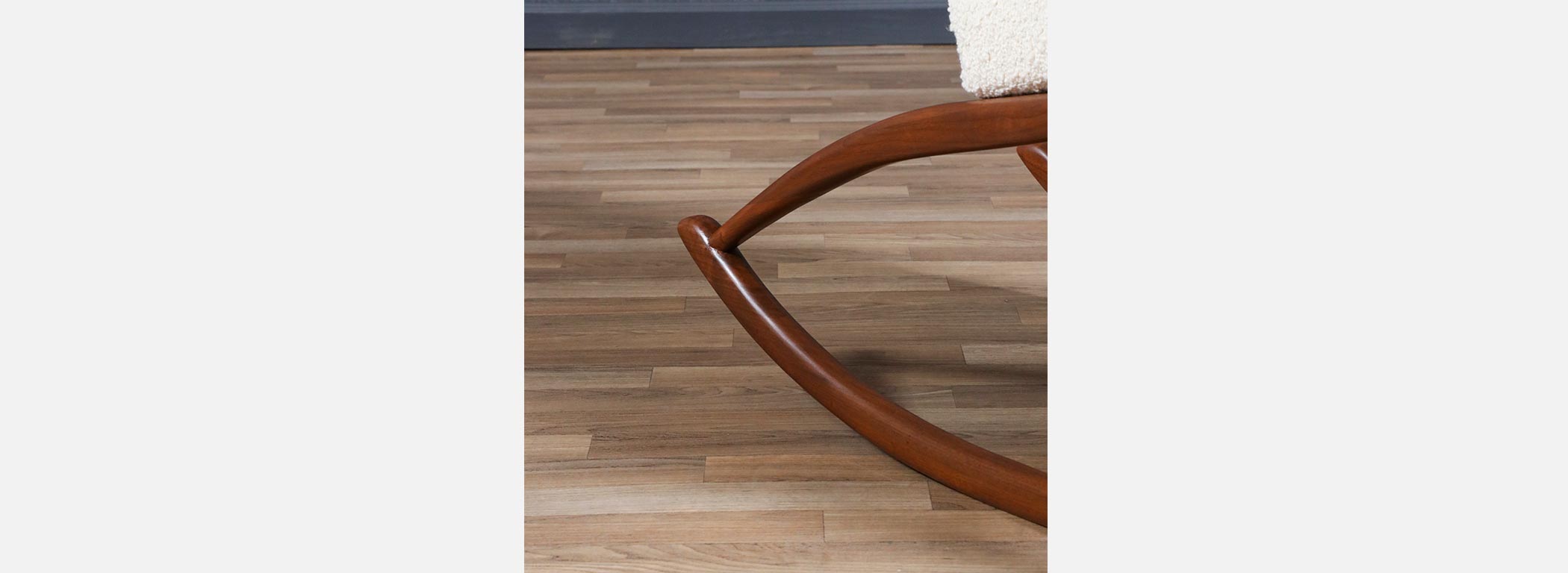 In the mid-20th century, designers increasingly explored the idea that furniture should move with people, not just sit in a space, leading to iconic rocking chairs that blended sculptural form with physical comfort. Walnut was a favored wood for these pieces because its strong yet graceful grain allowed designers to carve fluid, organic shapes without sacrificing structural integrity. Boucle upholstery became popular in later decades for its soft texture and ability to complement the natural warmth of wood, creating a tactile contrast that enhanced the sensory experience of furniture. Rocking chairs from this era reflect a broader cultural shift toward relaxed, human-scaled interiors where comfort and design were held in equal esteem.
