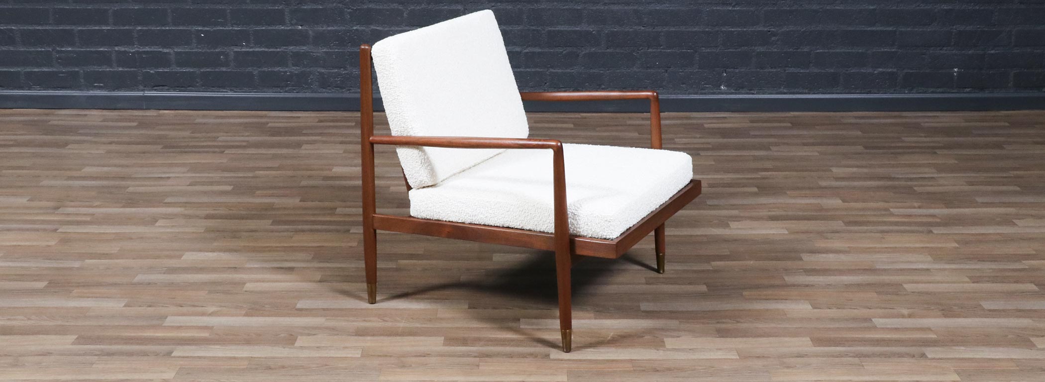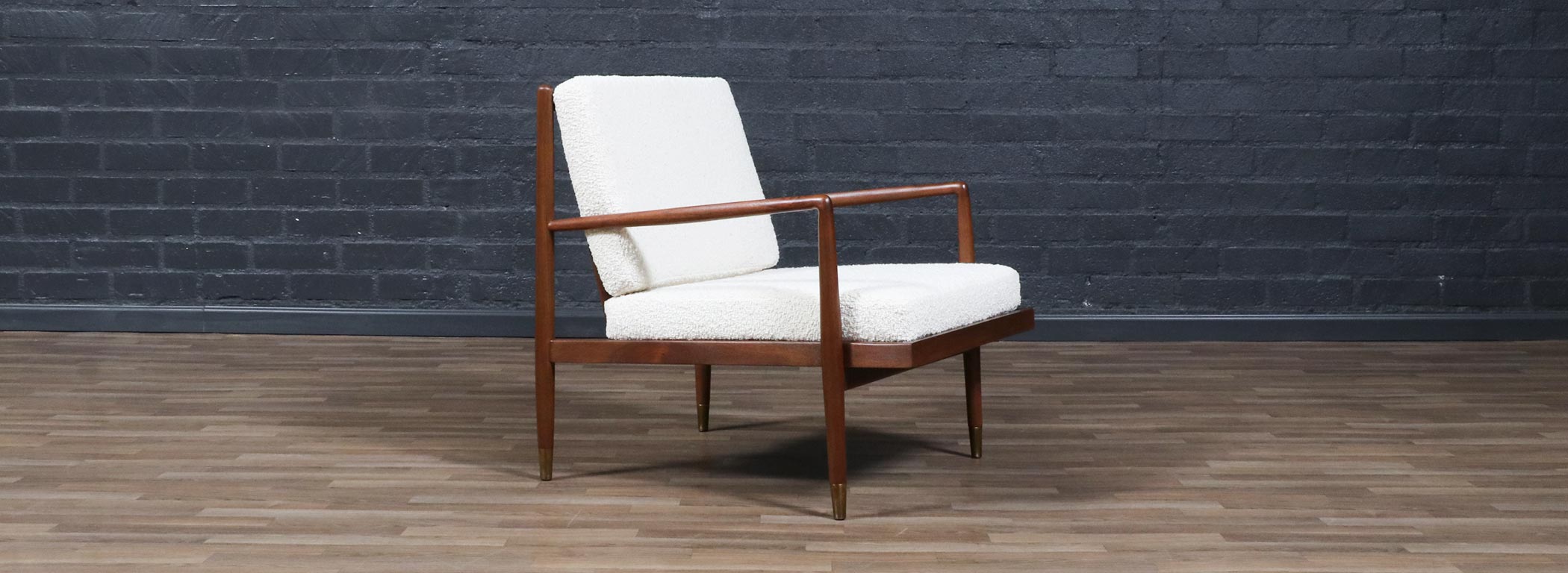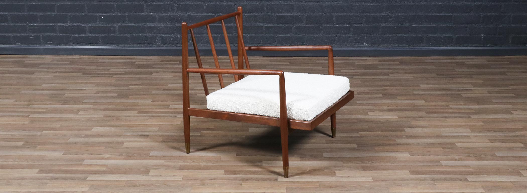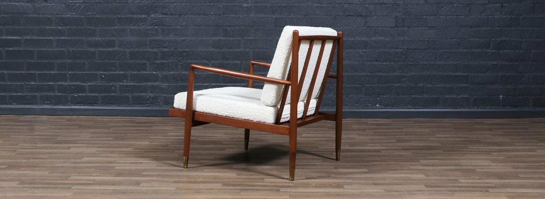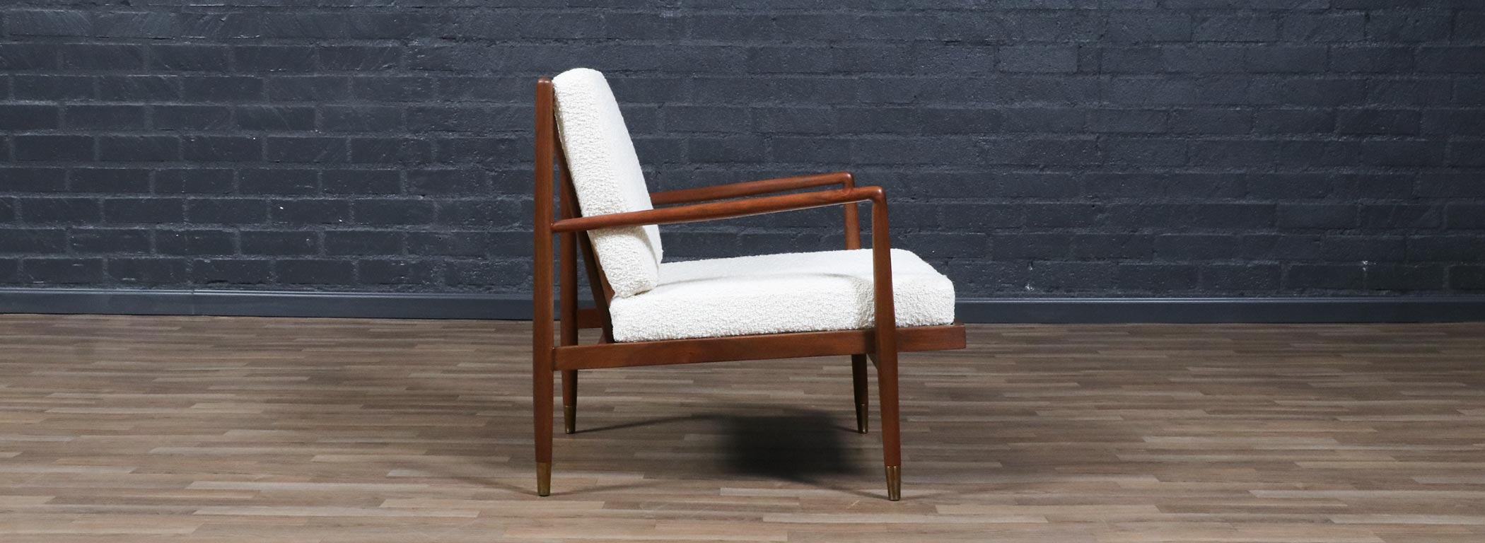 Mid-Century Modern Sculpted Walnut Lounge Chair w/ Brass Sabots