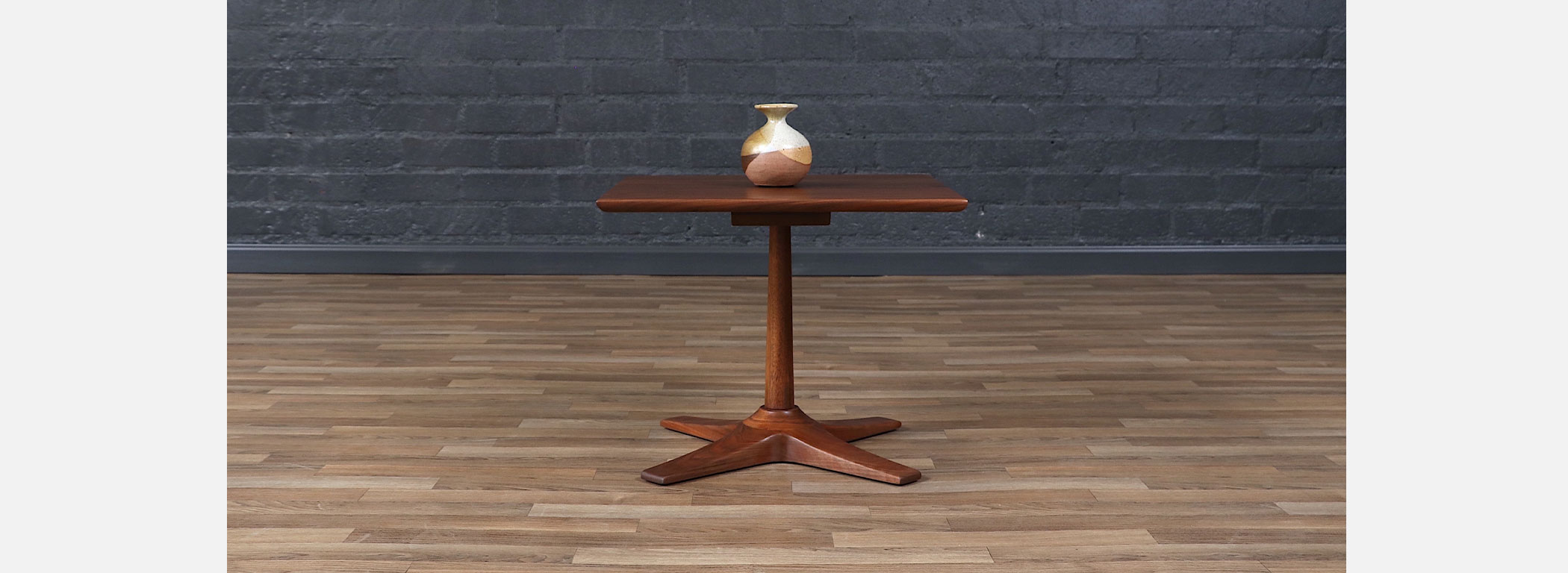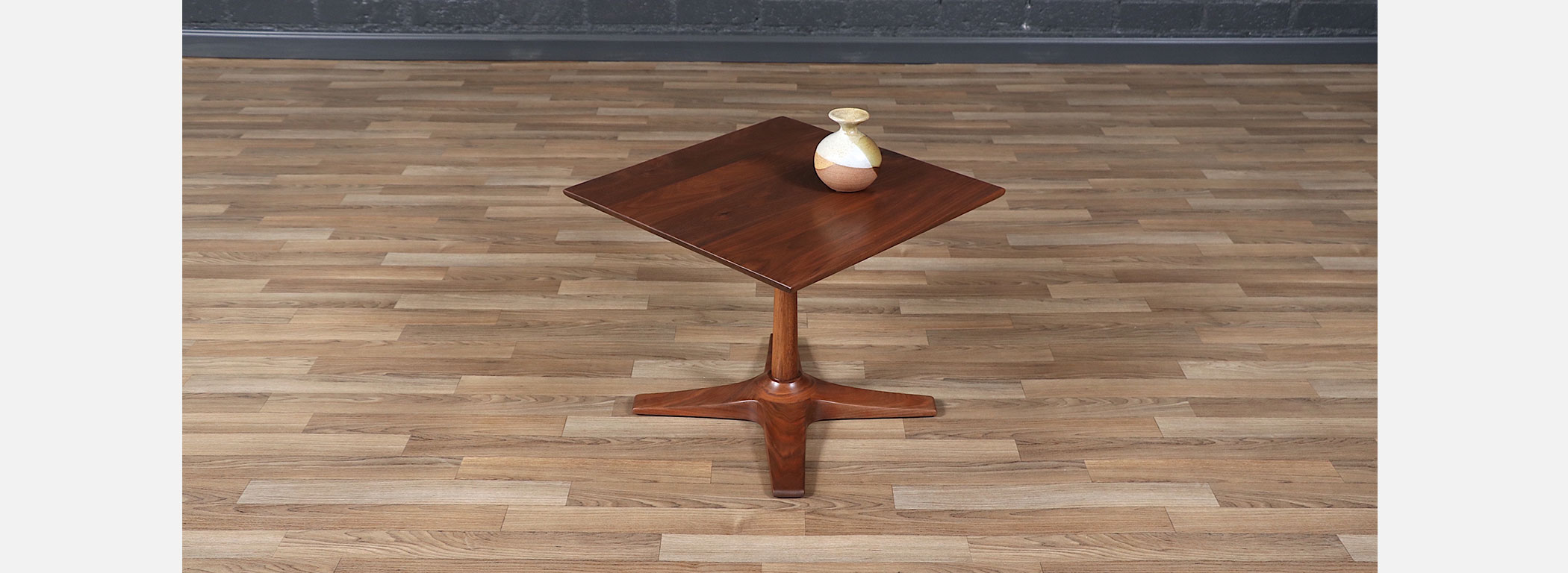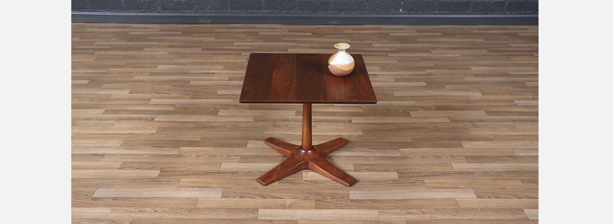 Mid-Century Modern Walnut Pedestal Side Table w/ Star Base