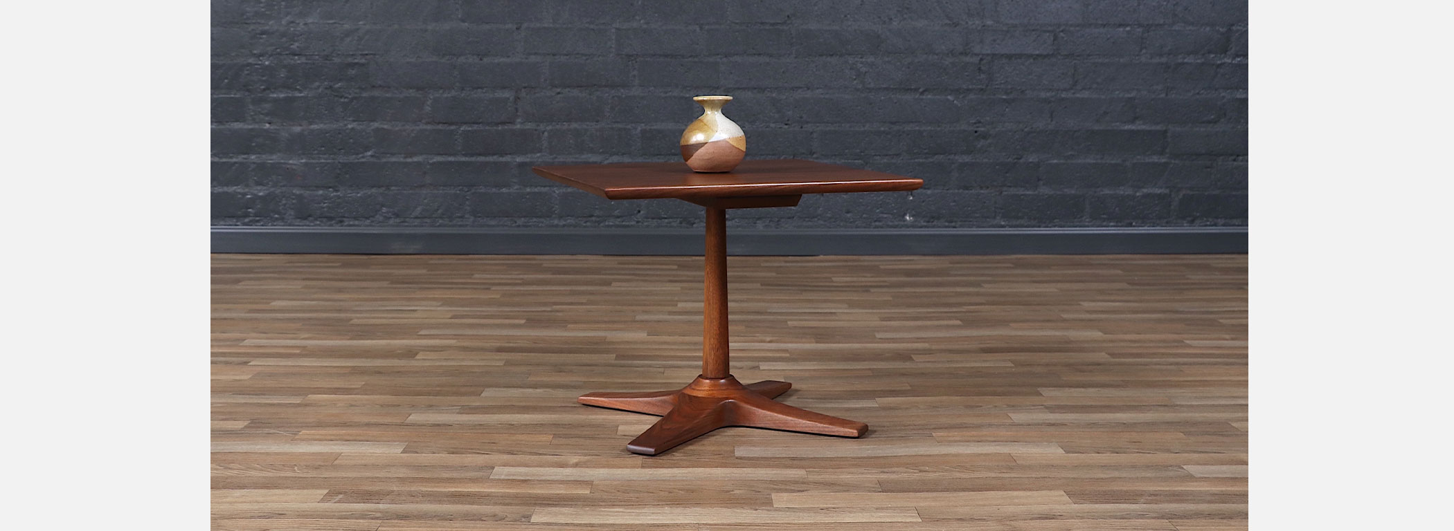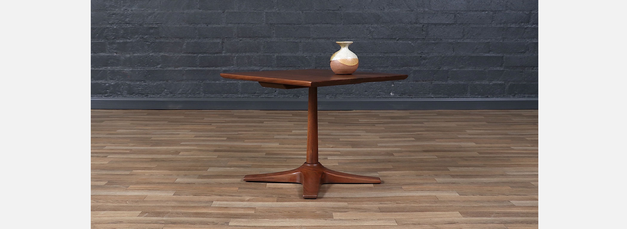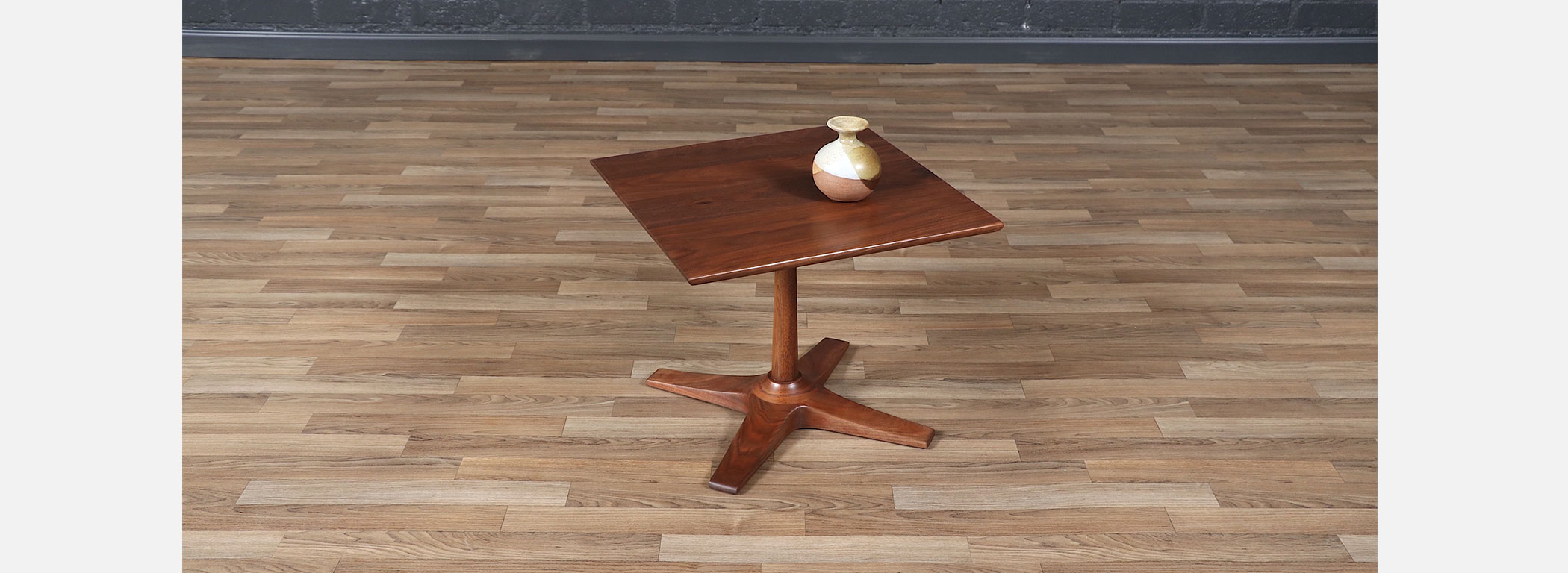 Mid-Century Modern Walnut Pedestal Side Table w/ Star Base