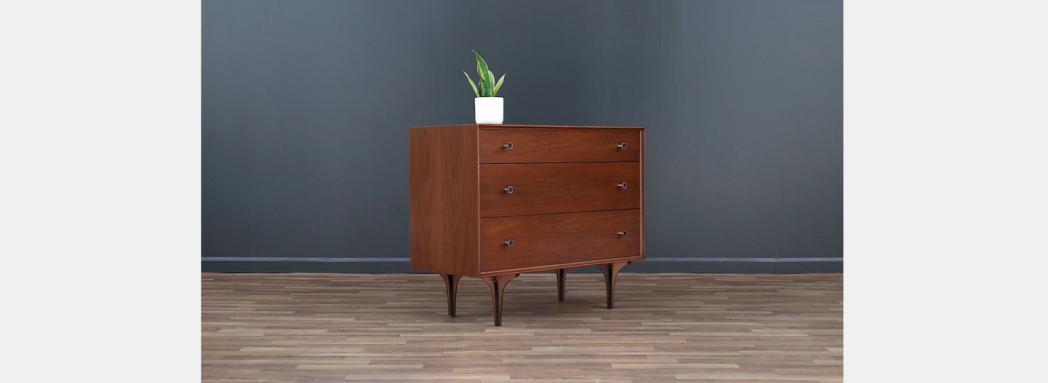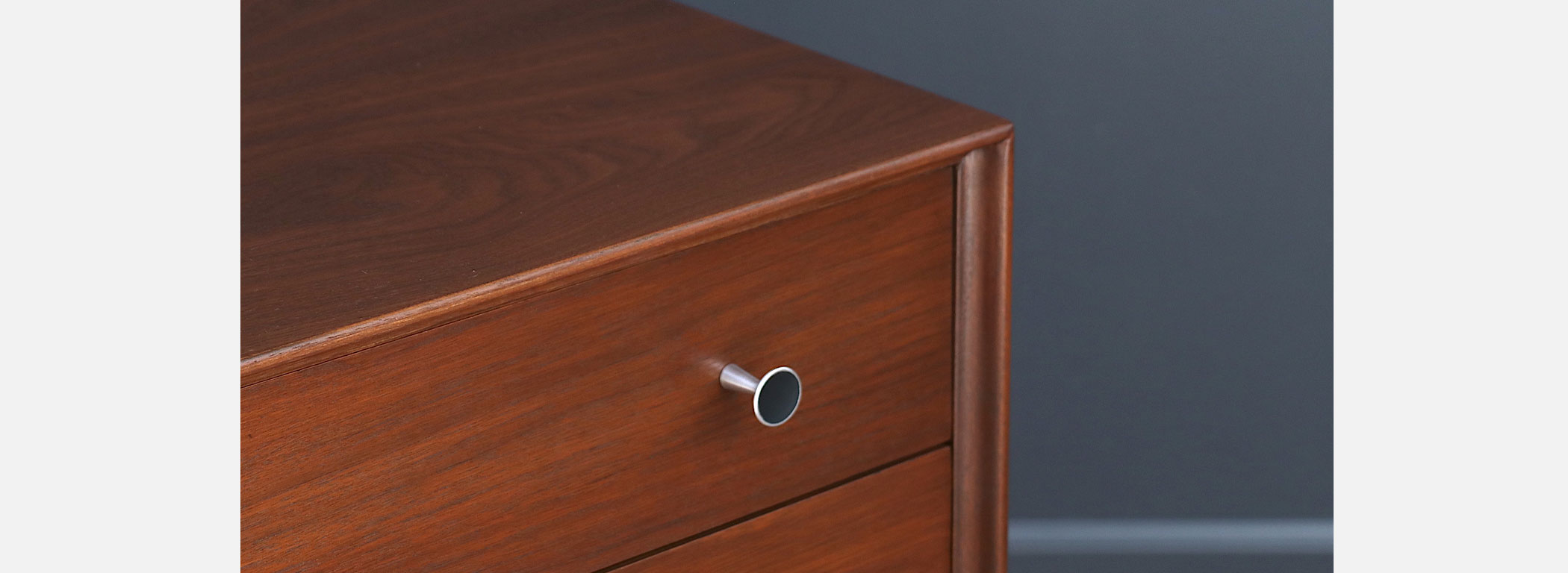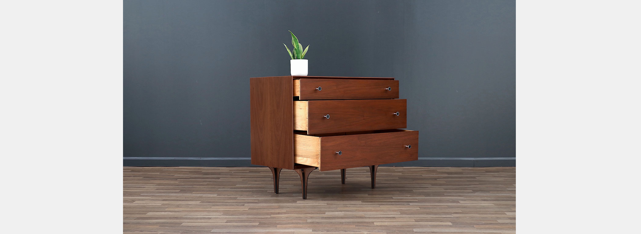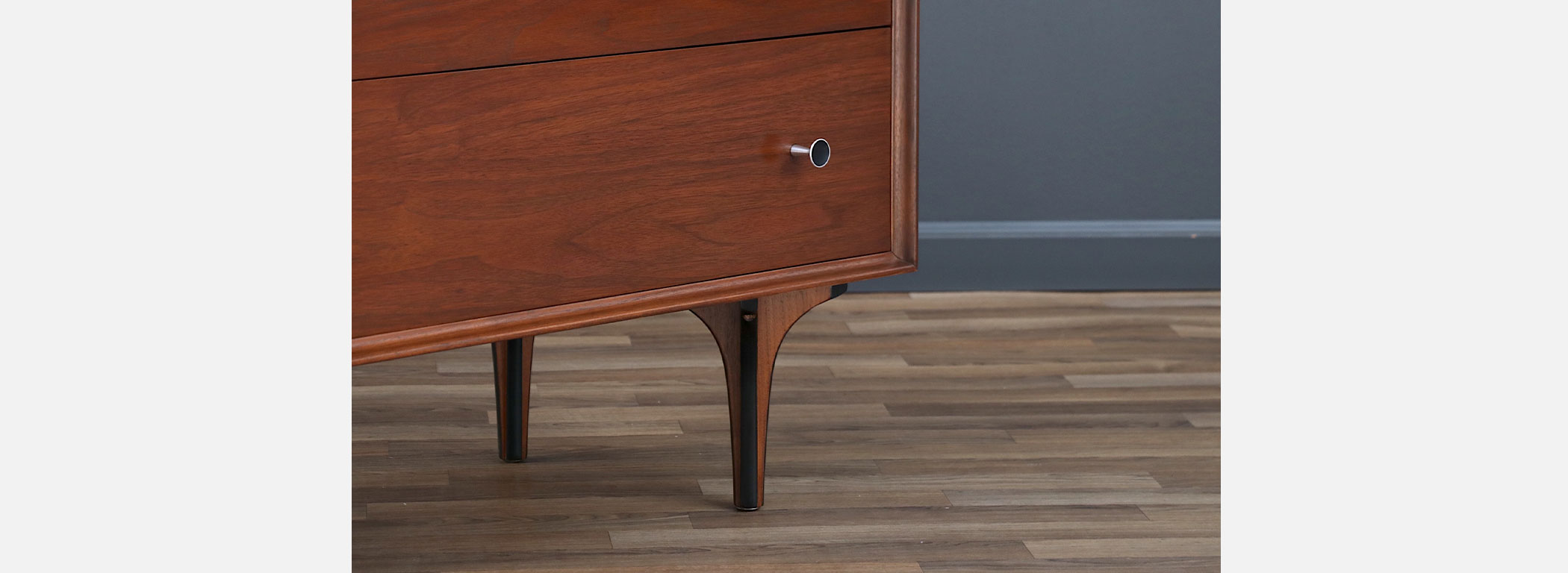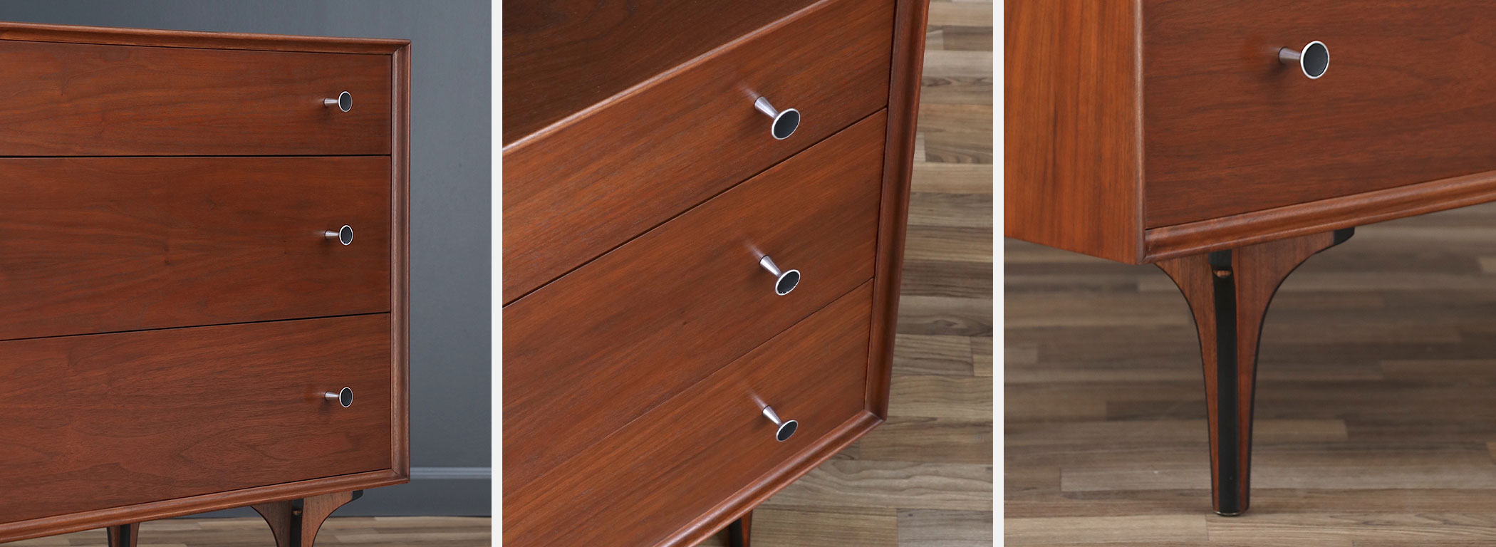 Walnut Wood, Steel Pulls, Bentwood Legs