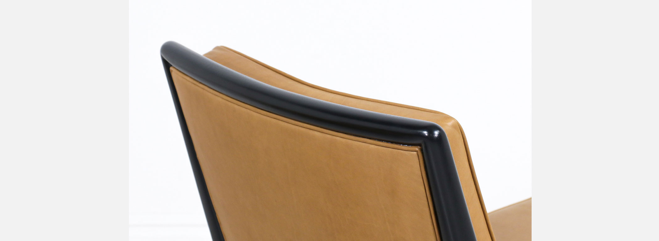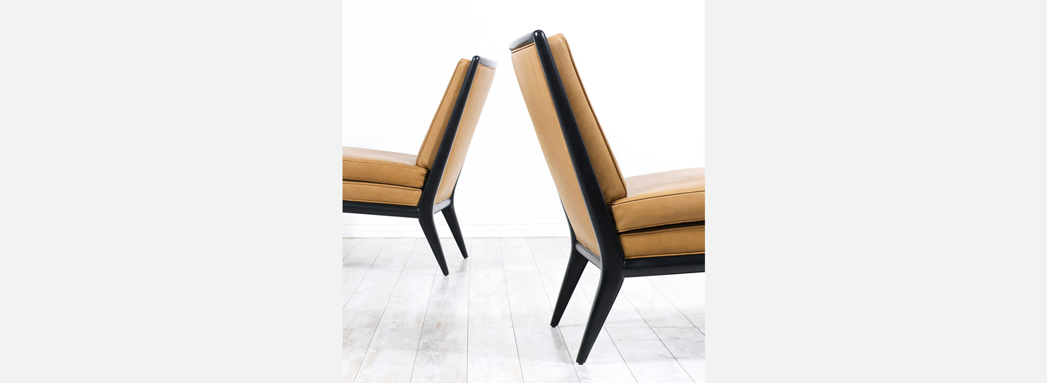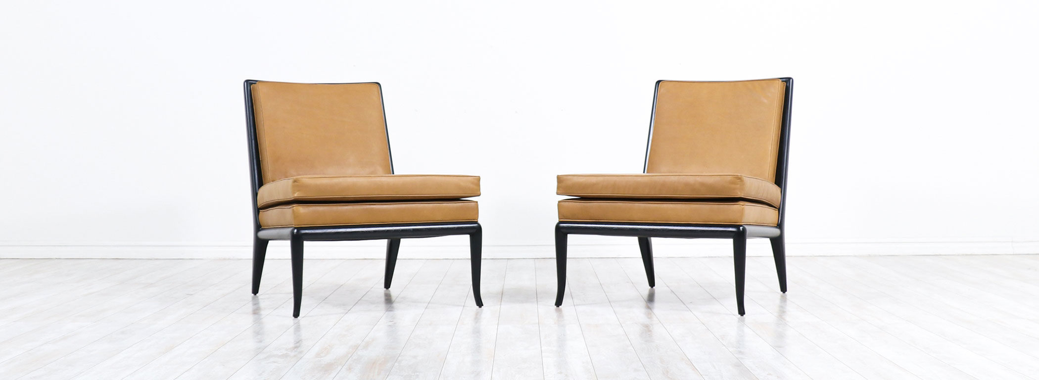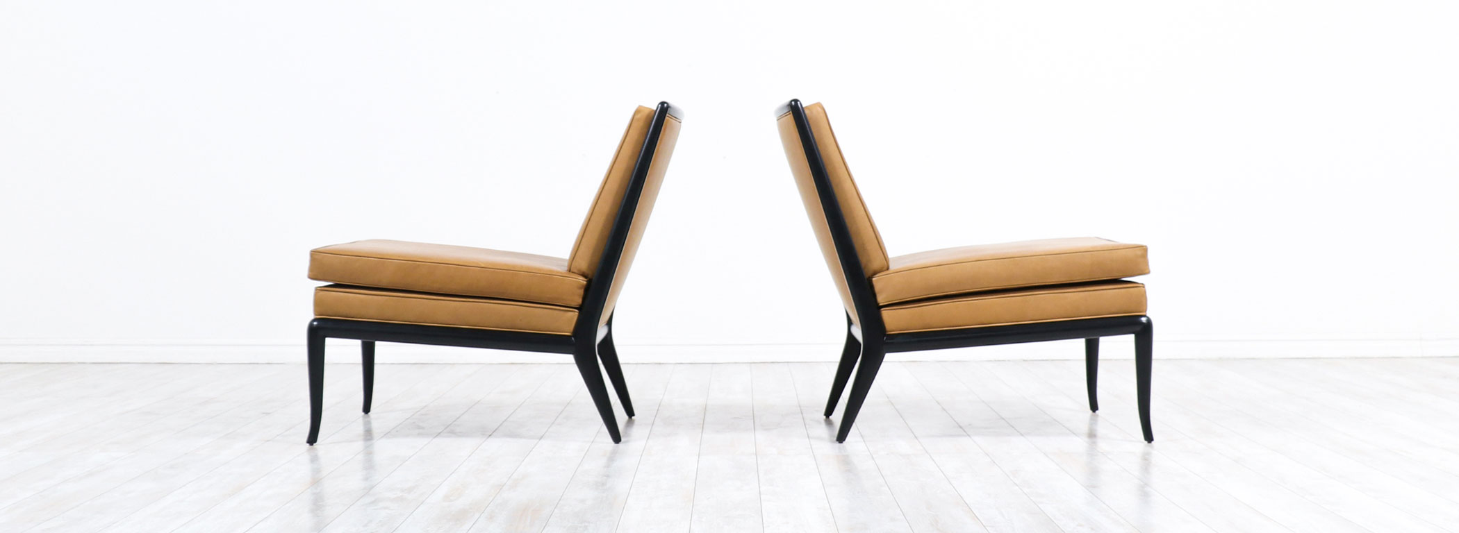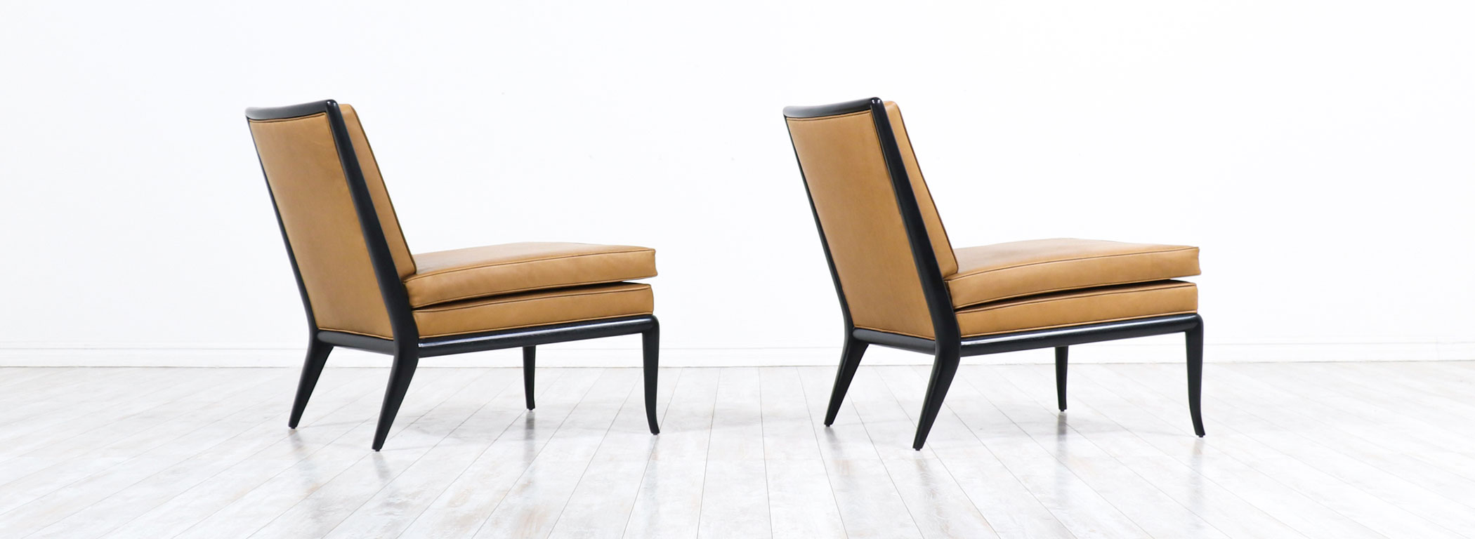 T.H. Robsjohn-Gibbings Leather & Ebonized Wood Slipper Lounge Chairs for Widdicomb