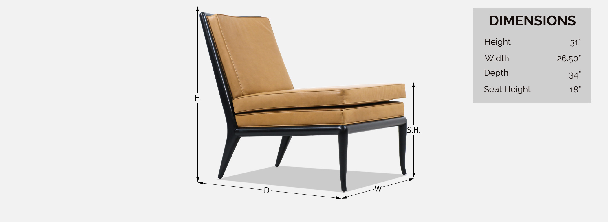 Ebonized Wood, New Italian Full-Grain Leather, New High-Density Foam