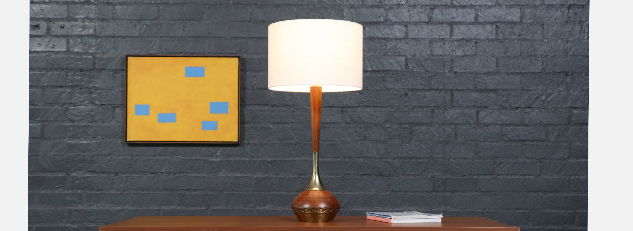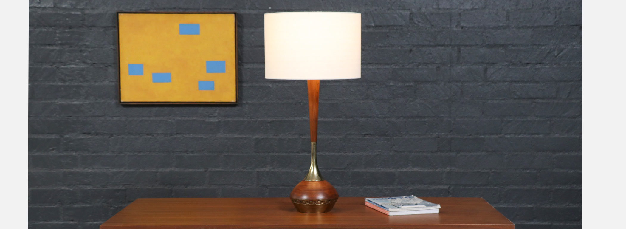 Walnut Wood, Brass, New Custom Linen Lamp Shade