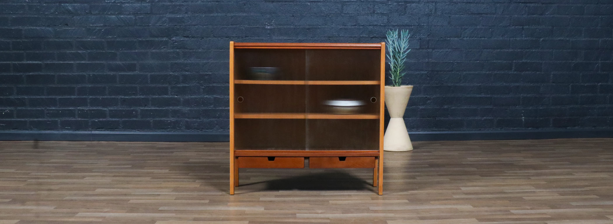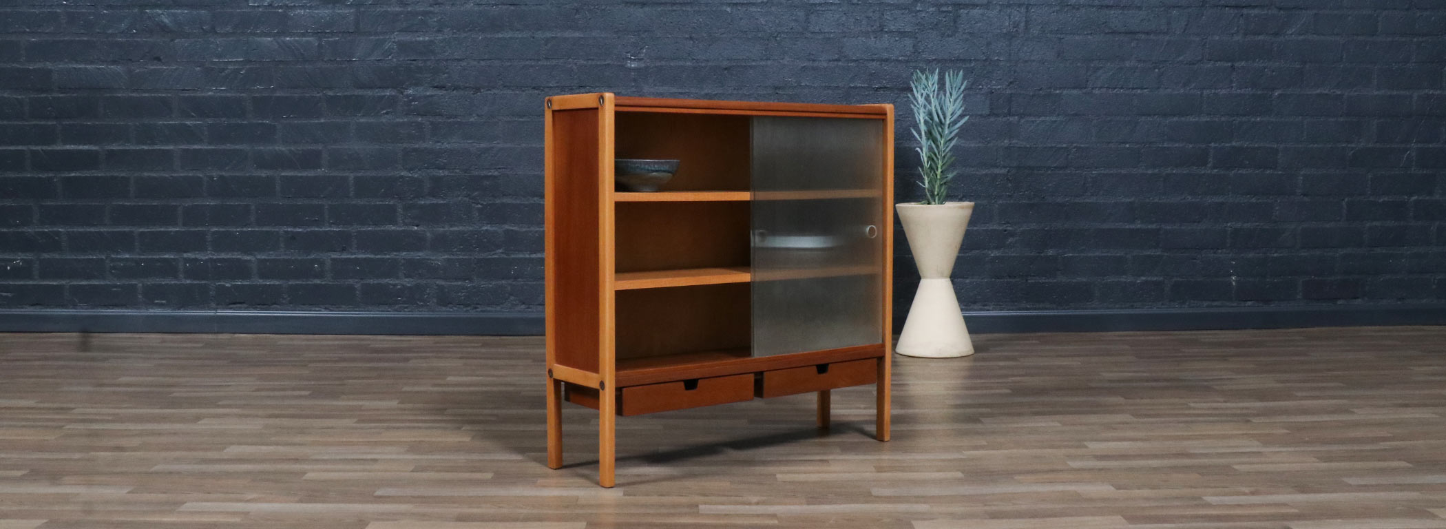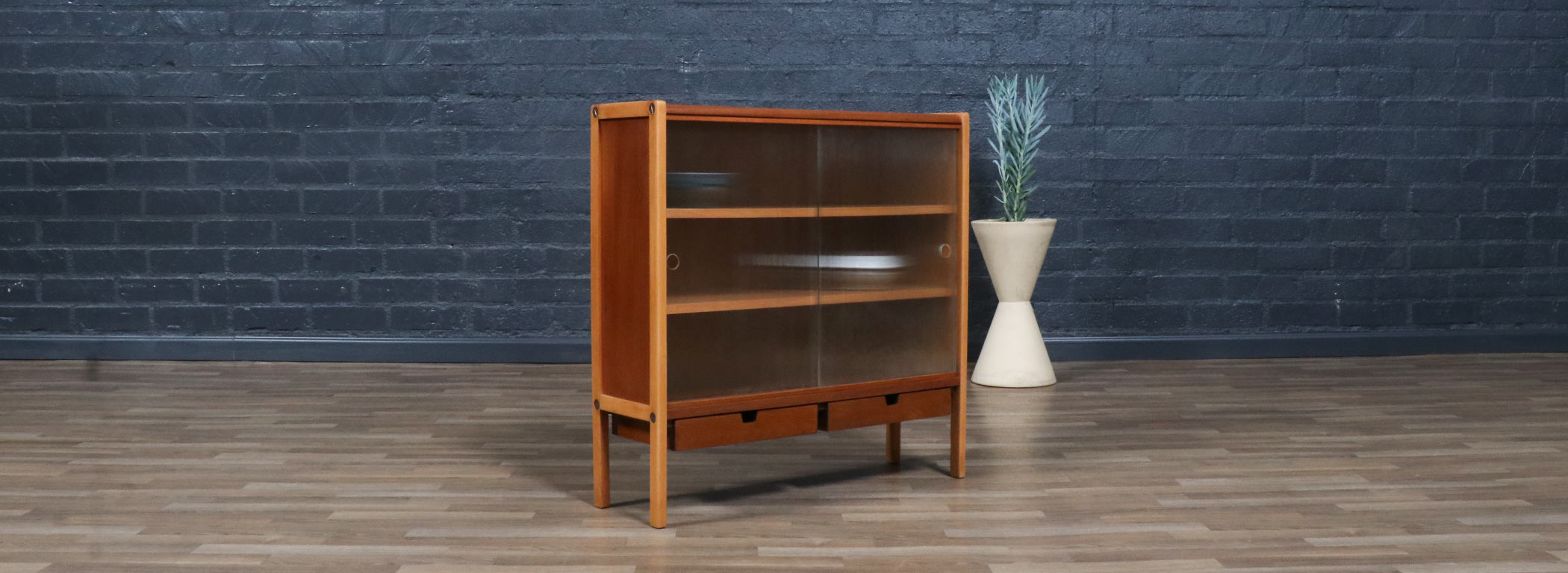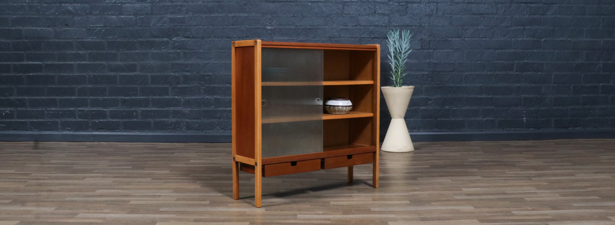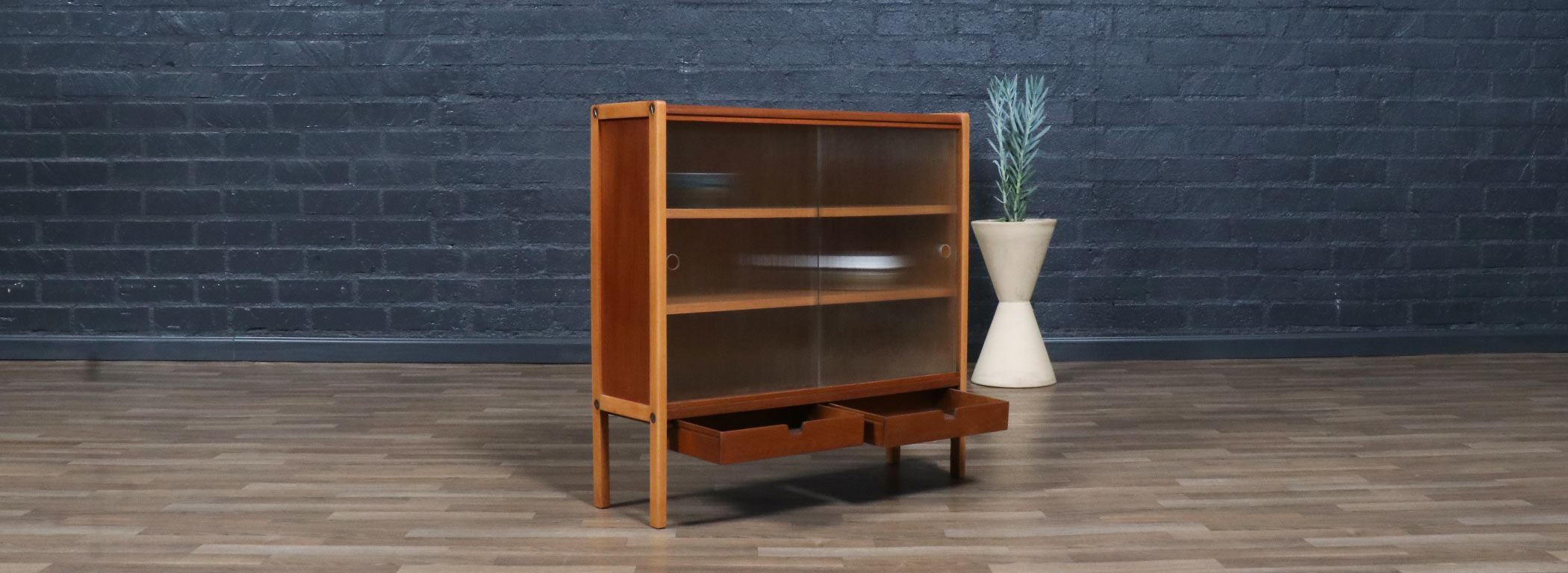 Teak Wood, Oak Wood, Glass Doors, Brass Hardware