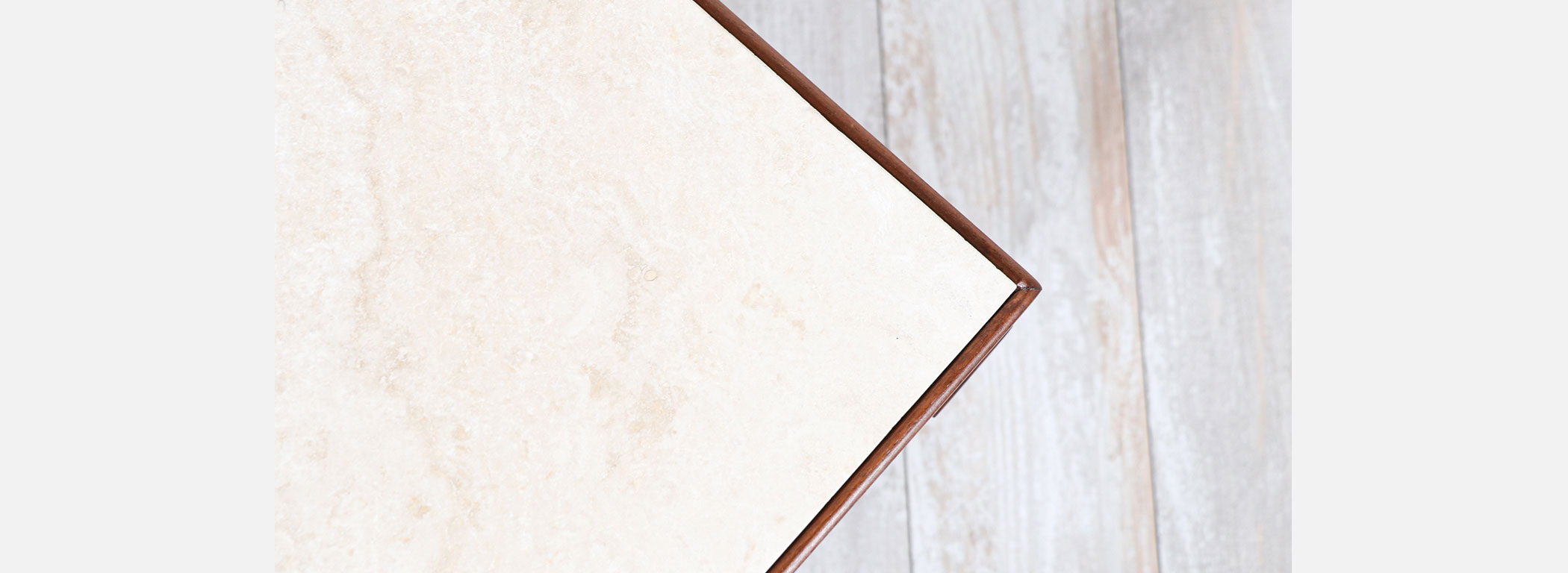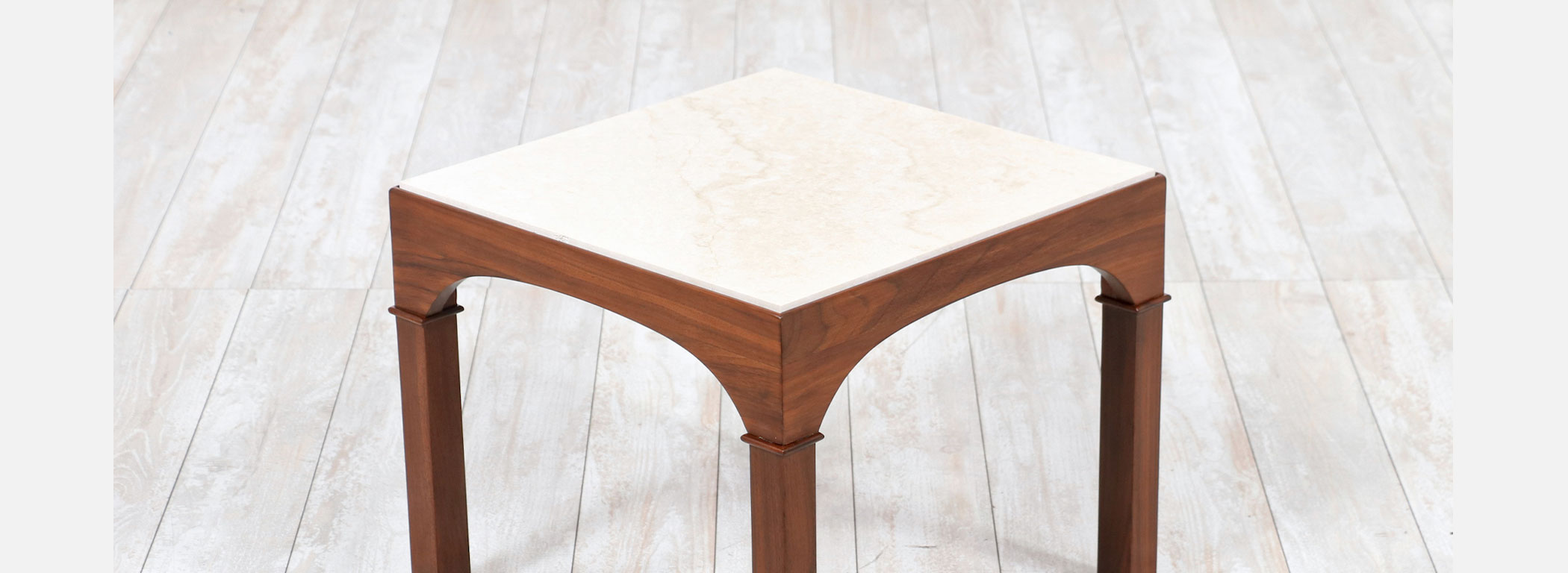 John Keal Side Table with Travertine Stone Top for Brown Saltman