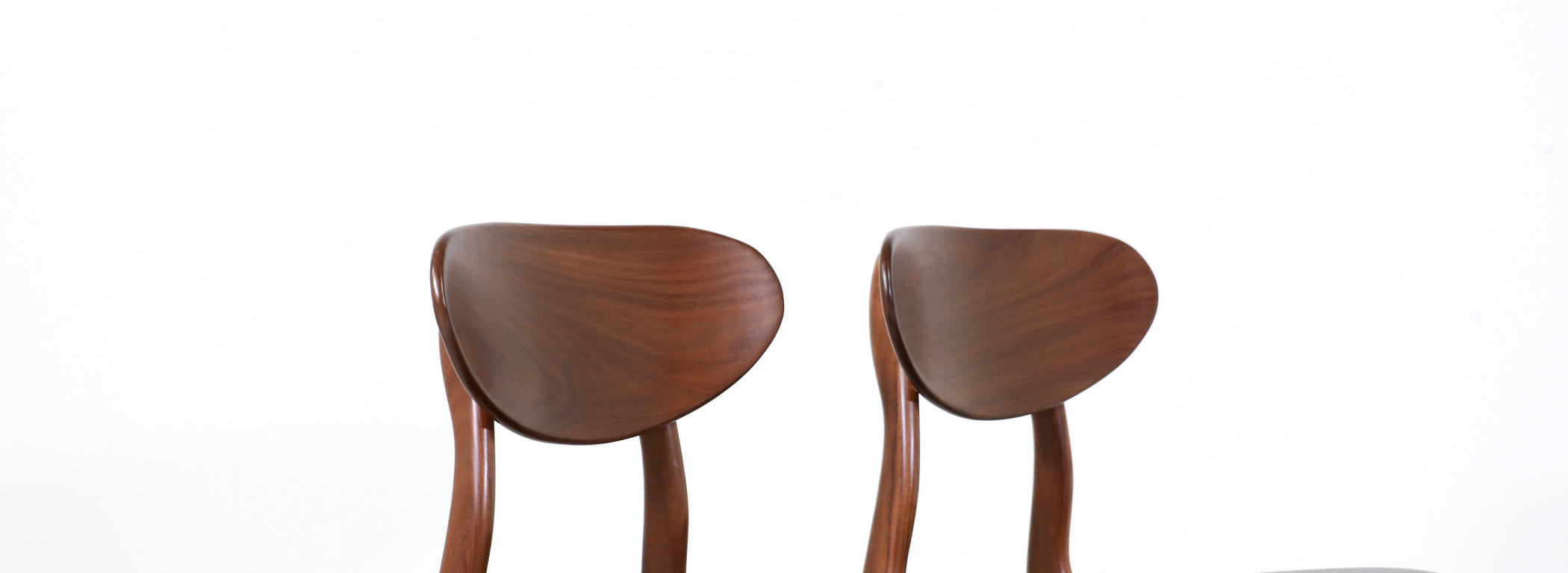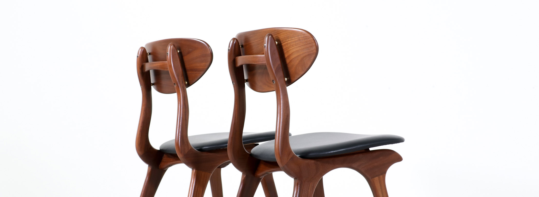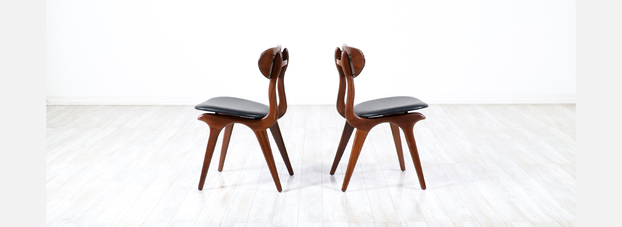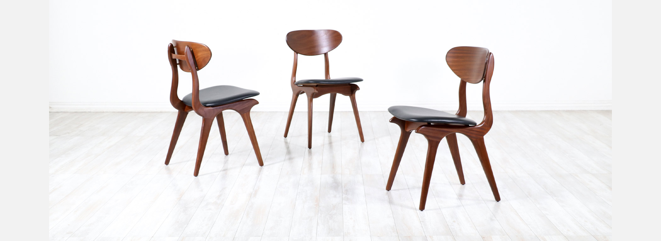 Louis van Teeffelen Sculpted Teak & Leather Dining Chairs for Webe