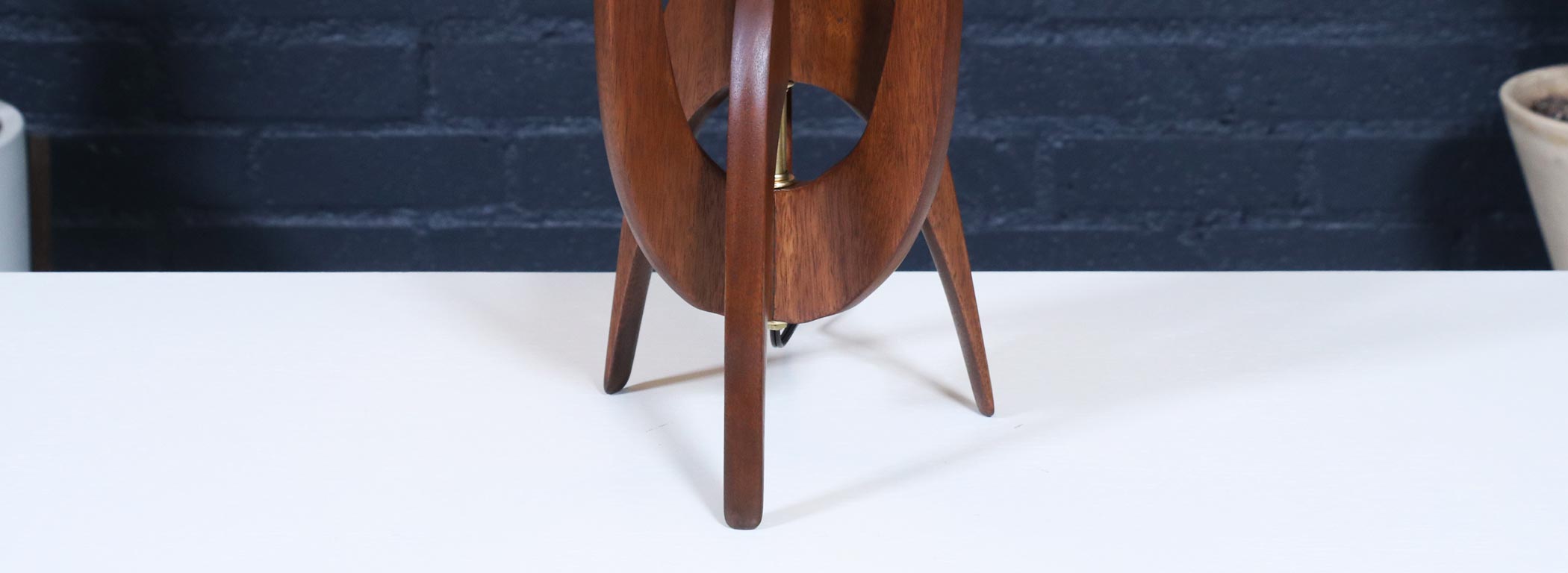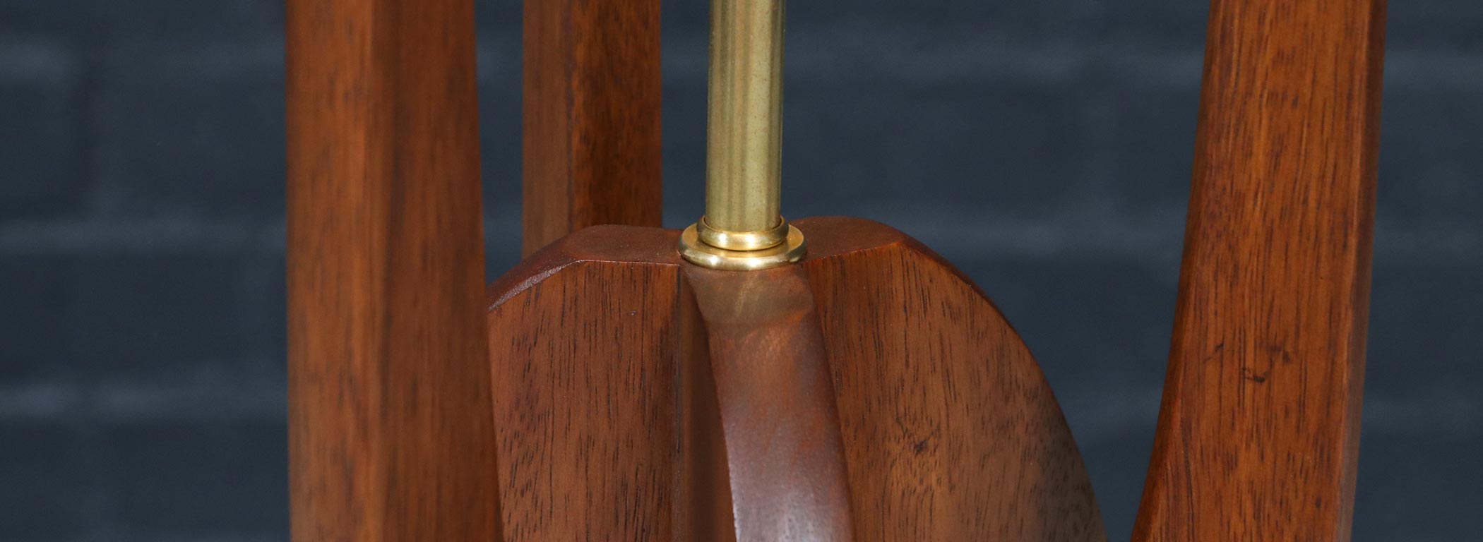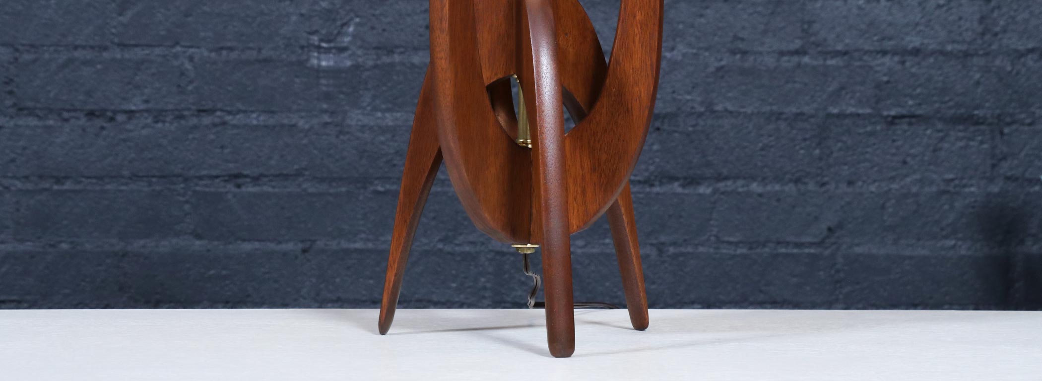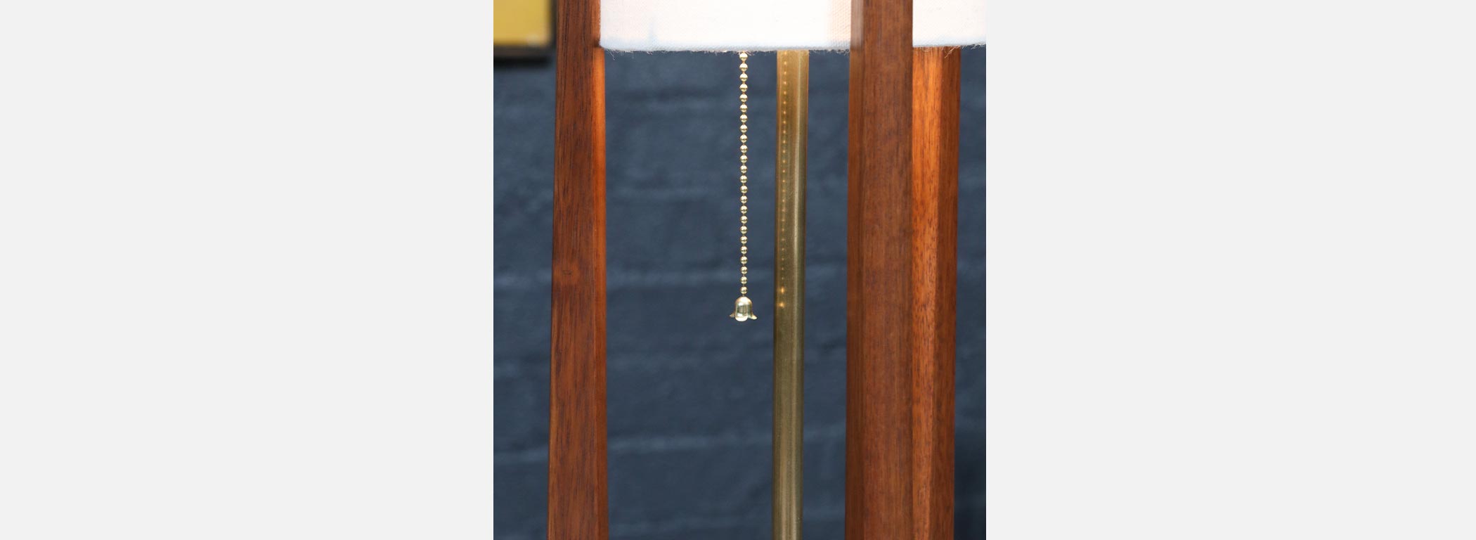 Walnut Stained-Mahogany Wood, New Custom Linen Shade, Brass Accents