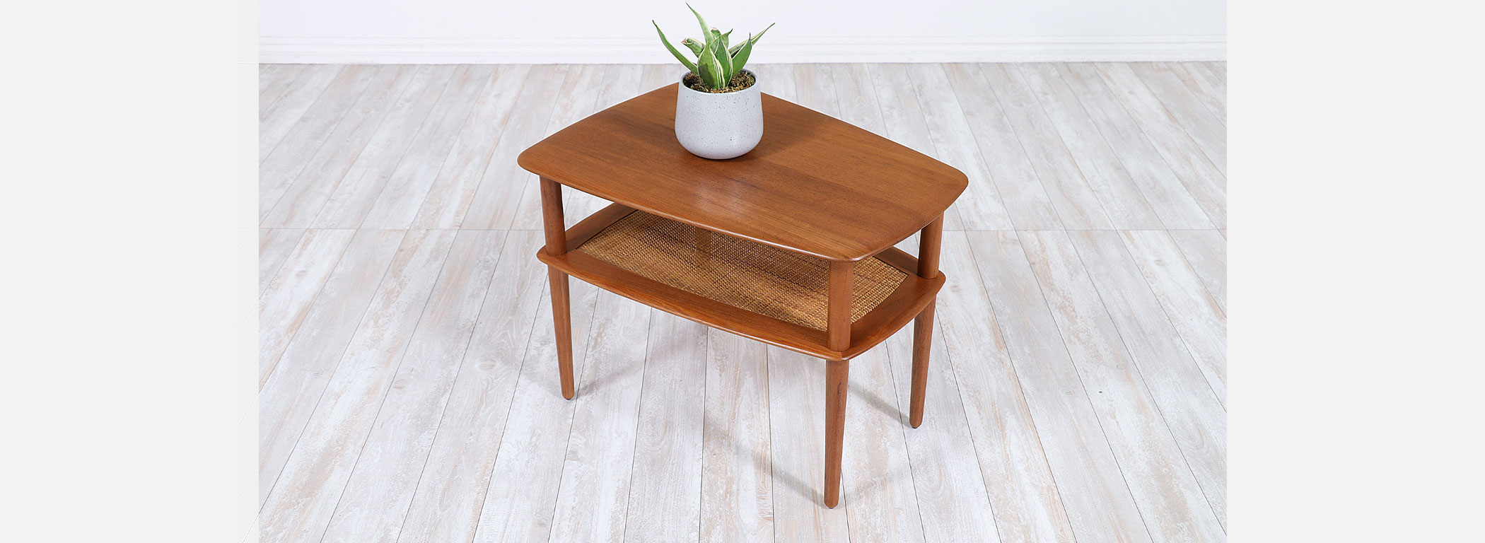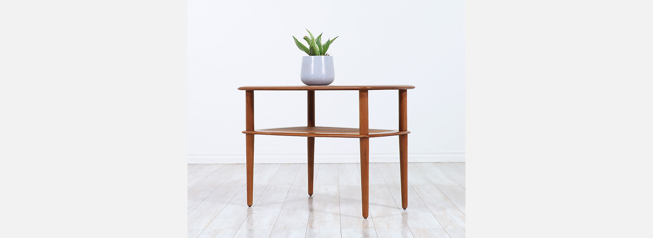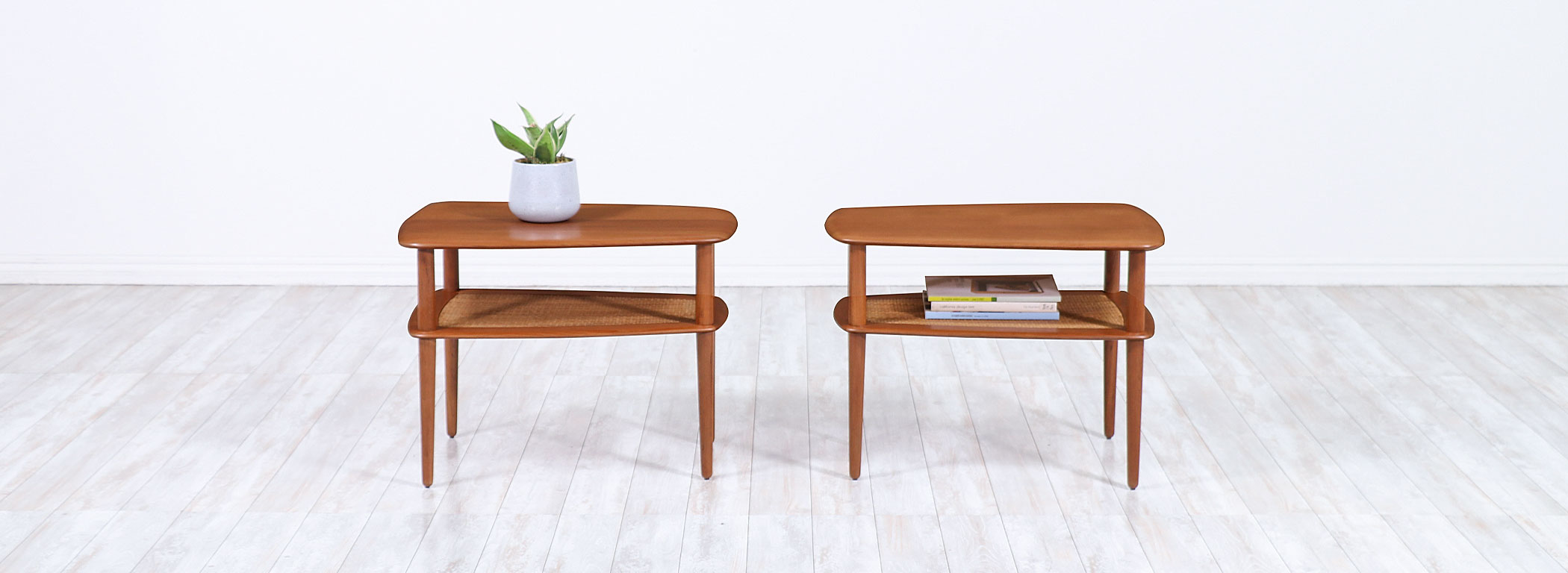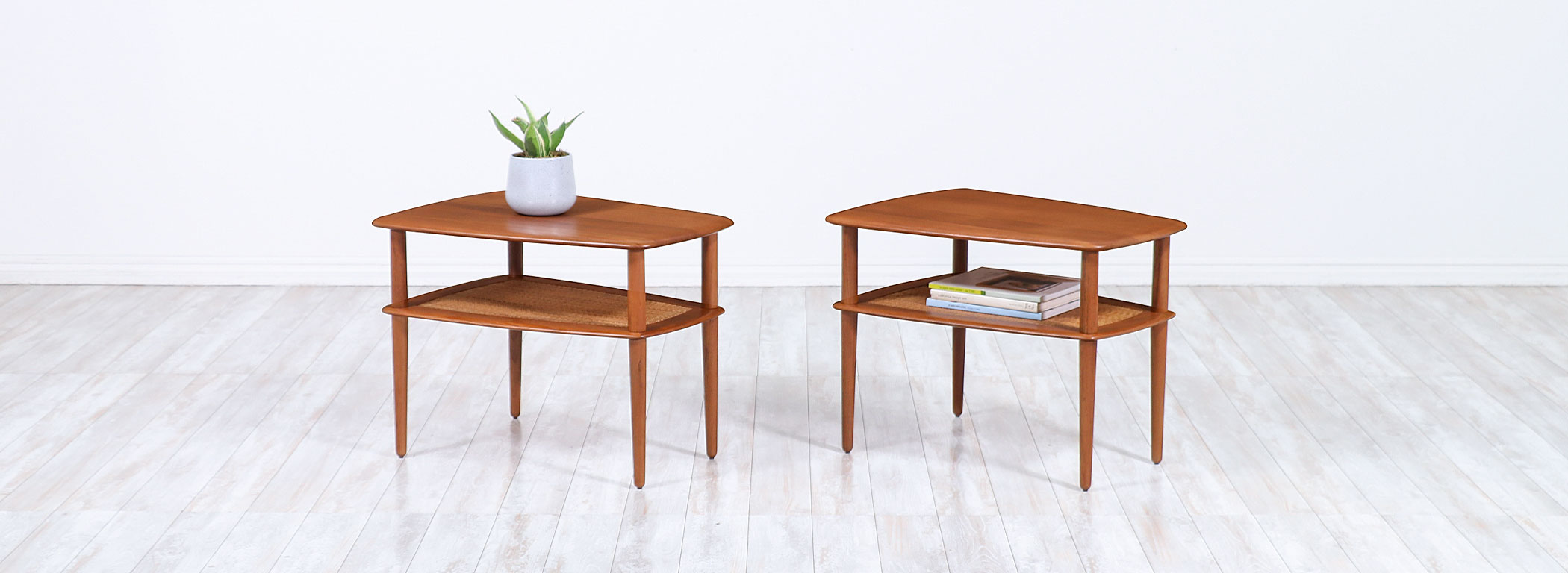 Peter Hvidt & Orla Mølgaard-Nielsen Teak & Cane Side Tables France & Søn