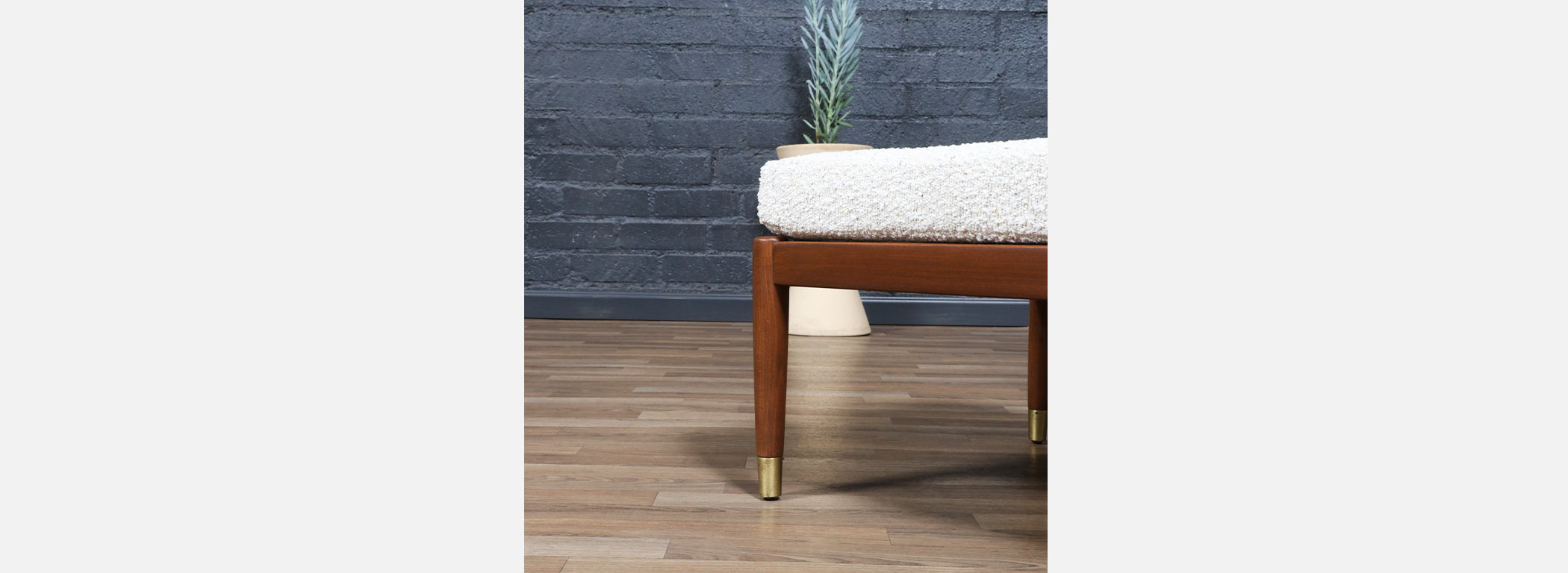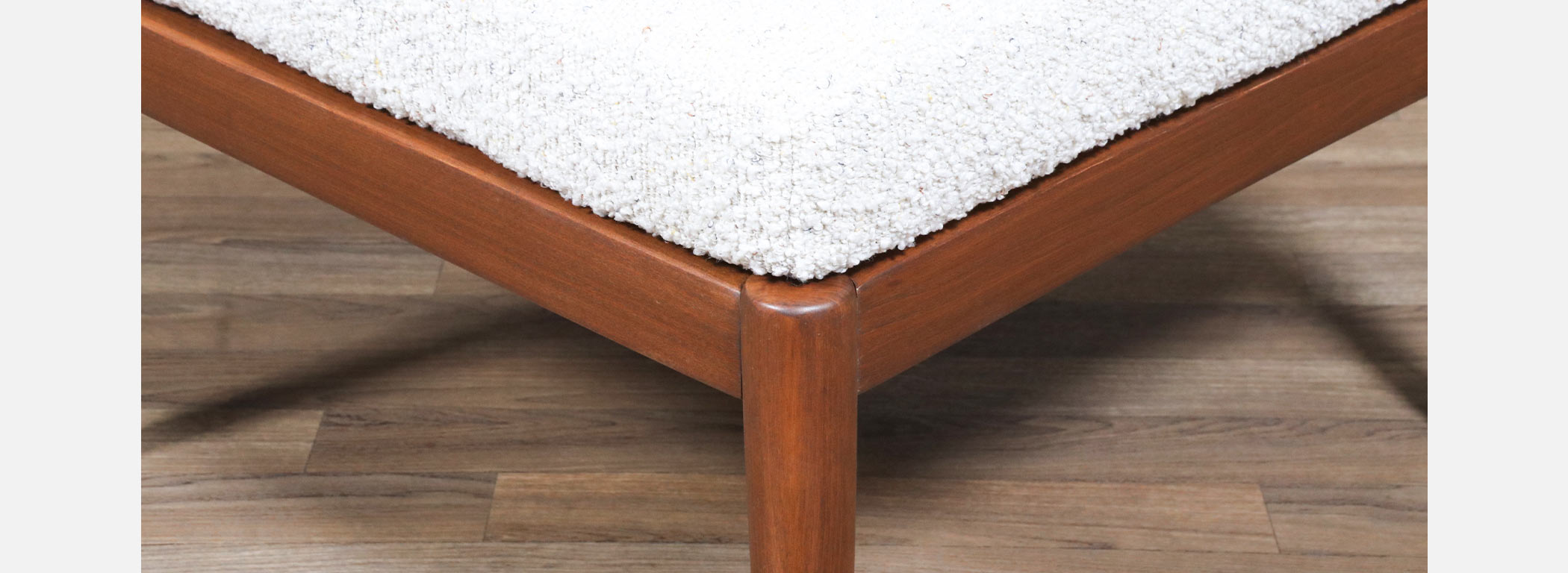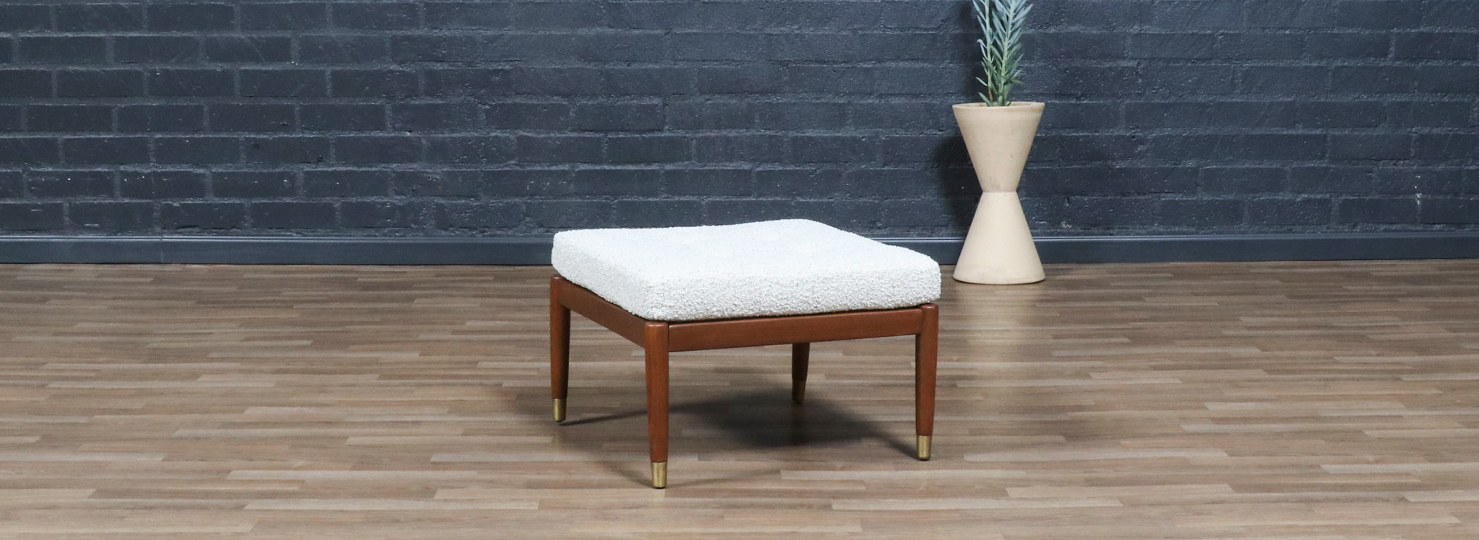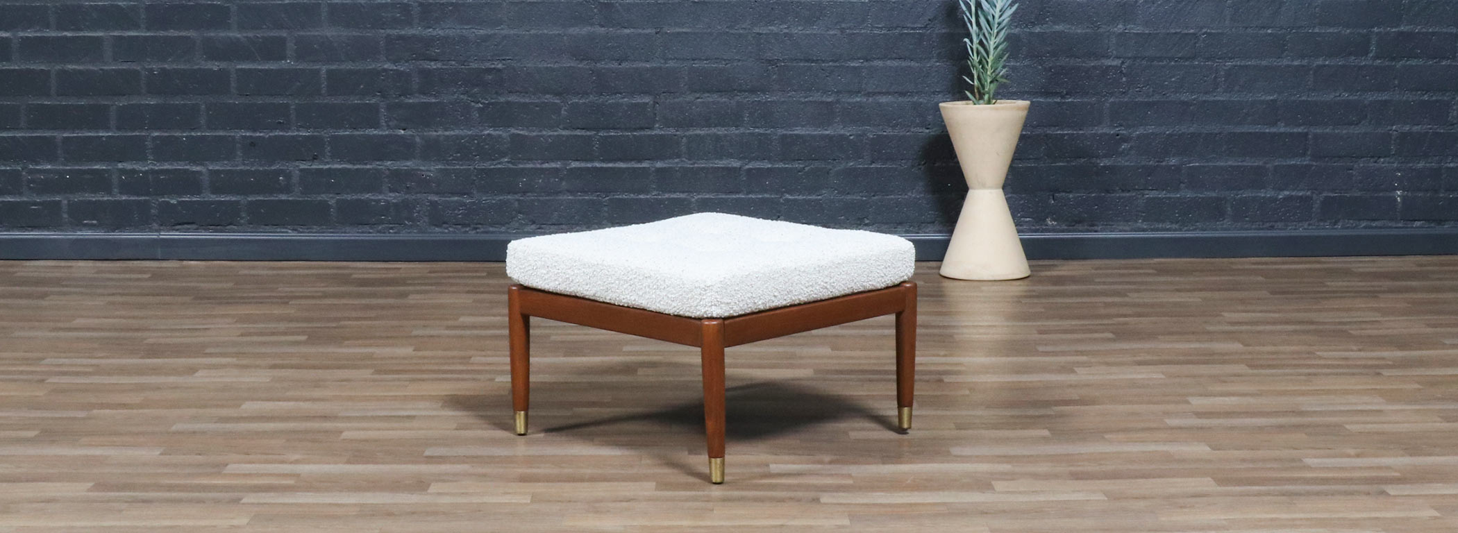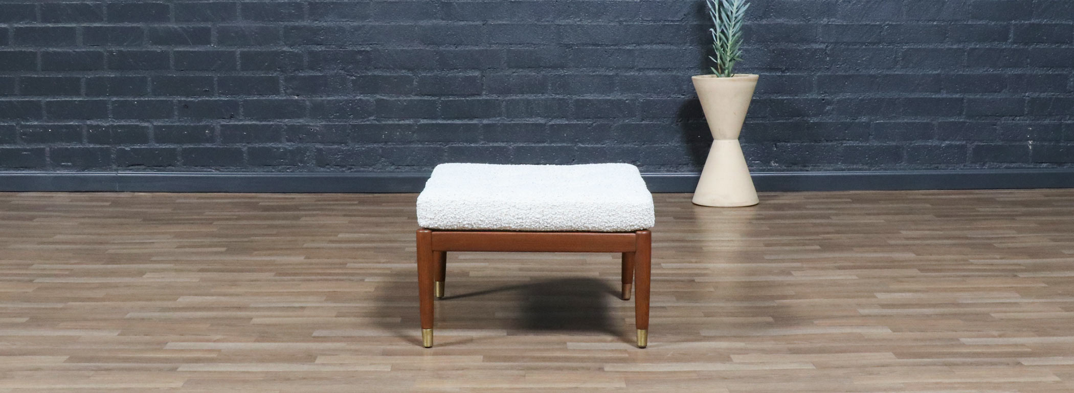 Swedish Modern Boucle & Leather Stool by Folke Ohlsson for Dux